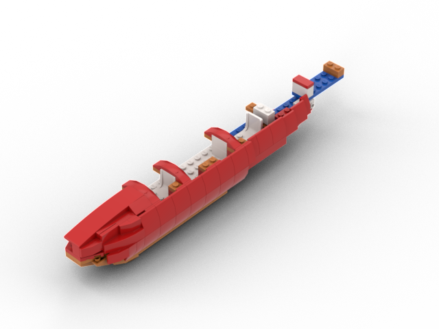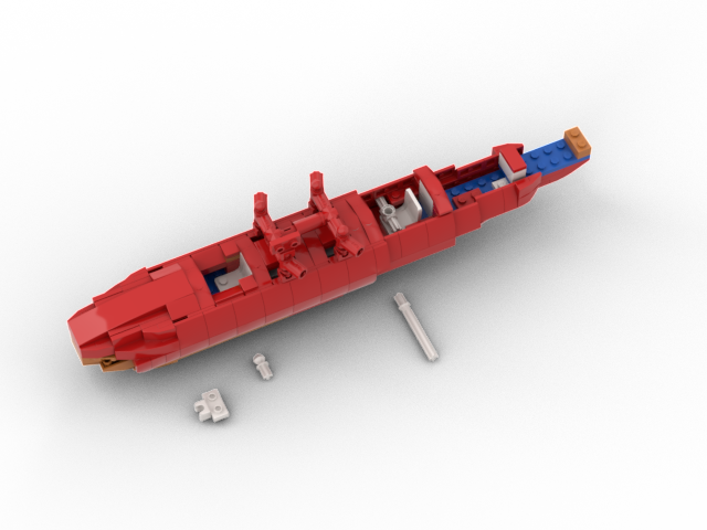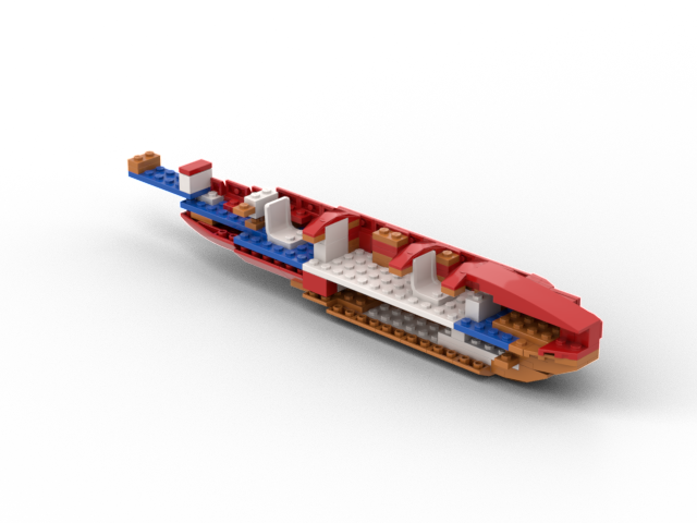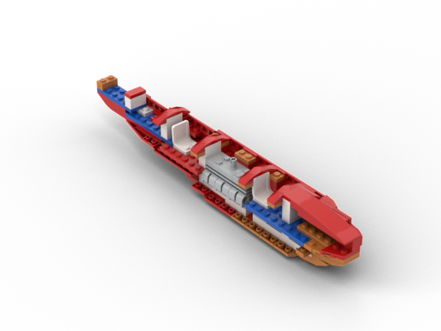 비행정의 본체는 카누와 같이 아래는 배모양 그리고 가운데가 두껍다가 다시 윗쪽으로 가면 얇게되는 구조라 레고로 표현하기 까다로웠다. 그래서, 중심축을 중심으로 의자를 배치하고 비율에 맞춰서 양쪽 옆을 패널형태로 연결할 수 있는 구조로 만들어 보았다.