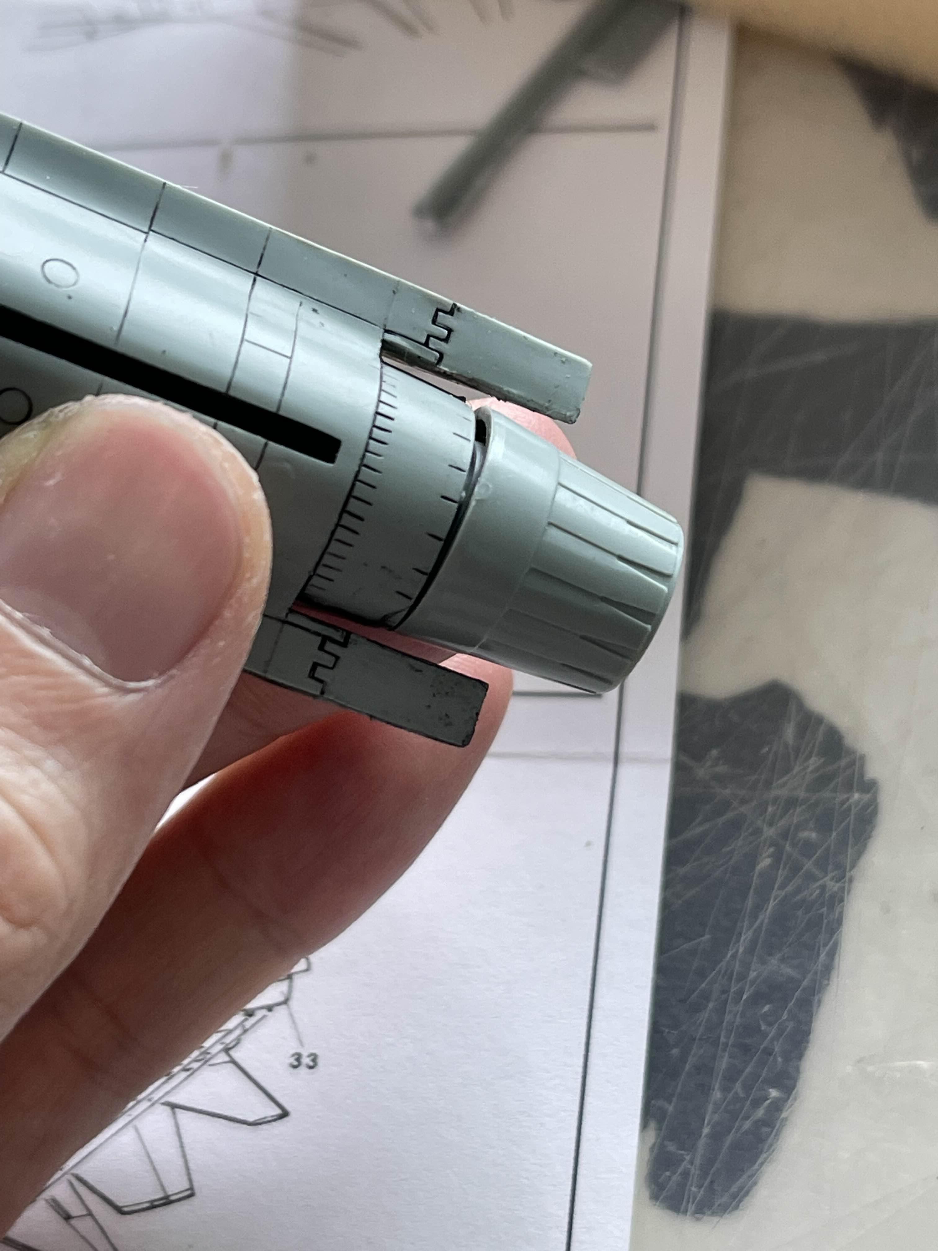 파일럿의 앞뒤로 금형이 있었음을 증명하는 듯 비껴 나와 있는 지느러미!