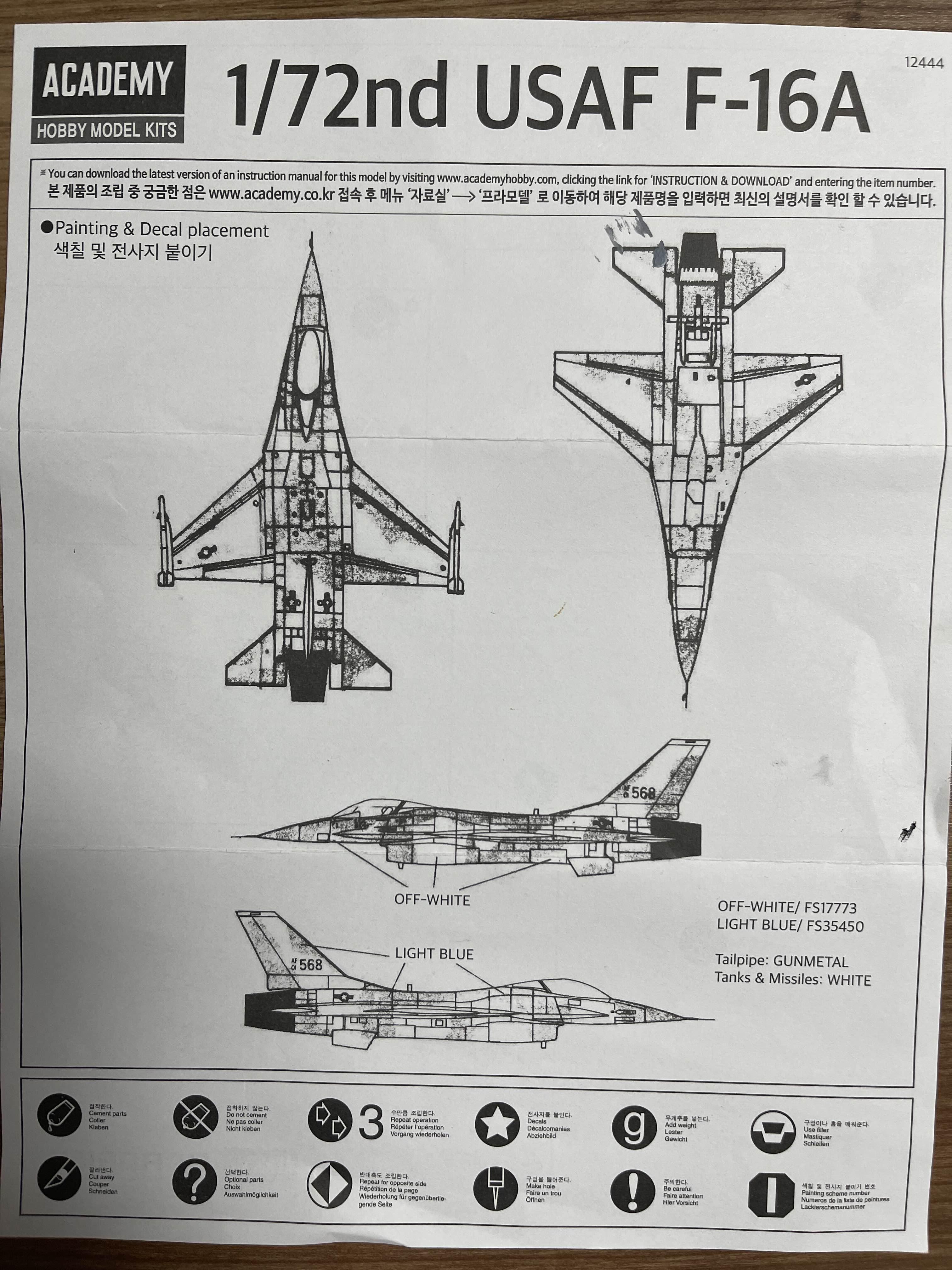 물론 데칼은 USAF F-16에 맞춰서 들어 있지만 금형과 설명서는 크게 차이가 없다
