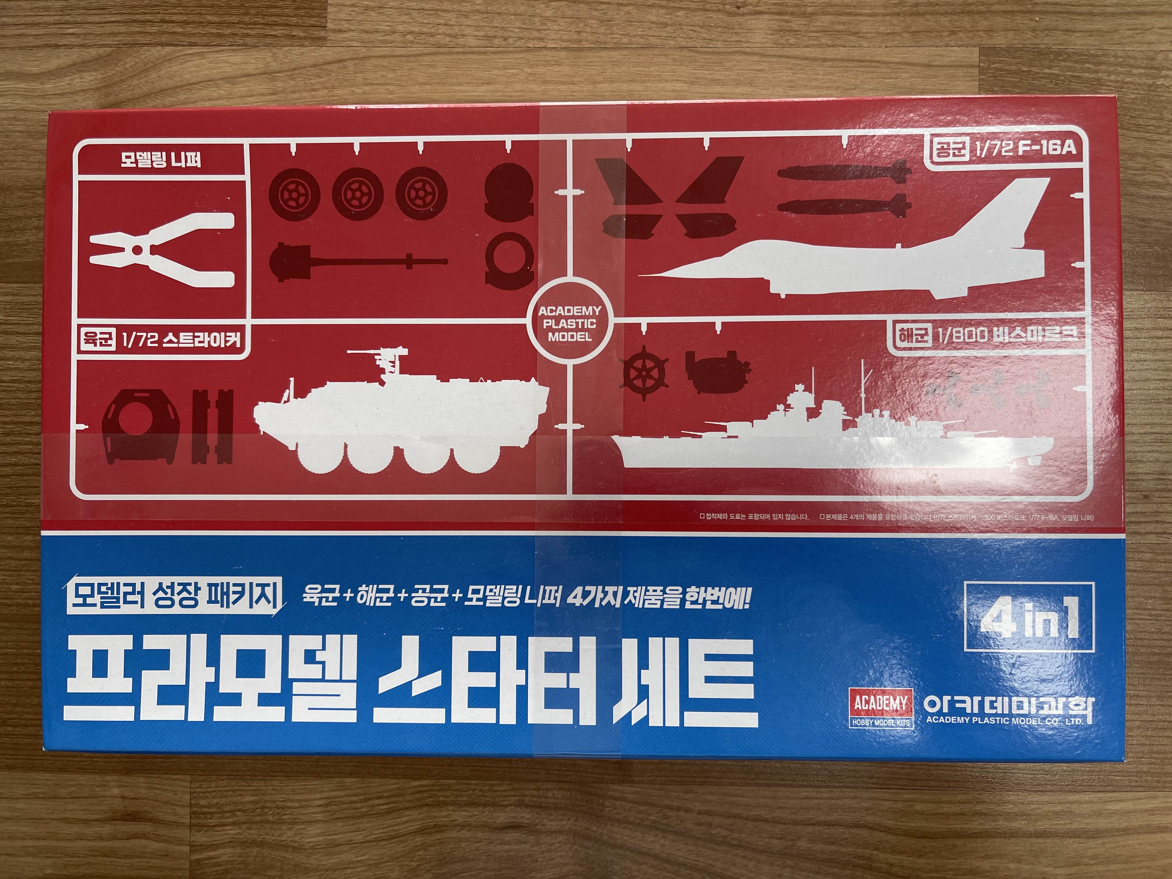 아카데미 프라모델 스타터 세트를 몇 달전에 오래전에 충동(?) 구매했었다. 사실 마트 갈 때마다 뭔가 무심하게 팔고있는 저렴한 가격에 여러 가지가 포함되어 있는 모델이 궁금하기도 했고, 이런(?) 것도 한 번 만들어 보고 싶다는 생각에 사들고 왔었다. 그런데 어찌 어찌 하다보니 산지 몇 달이 지나도록 포장도 안뜯고 보관중이었다가, 지난 연휴 동안 하나씩 만들어 보기 시작했다.