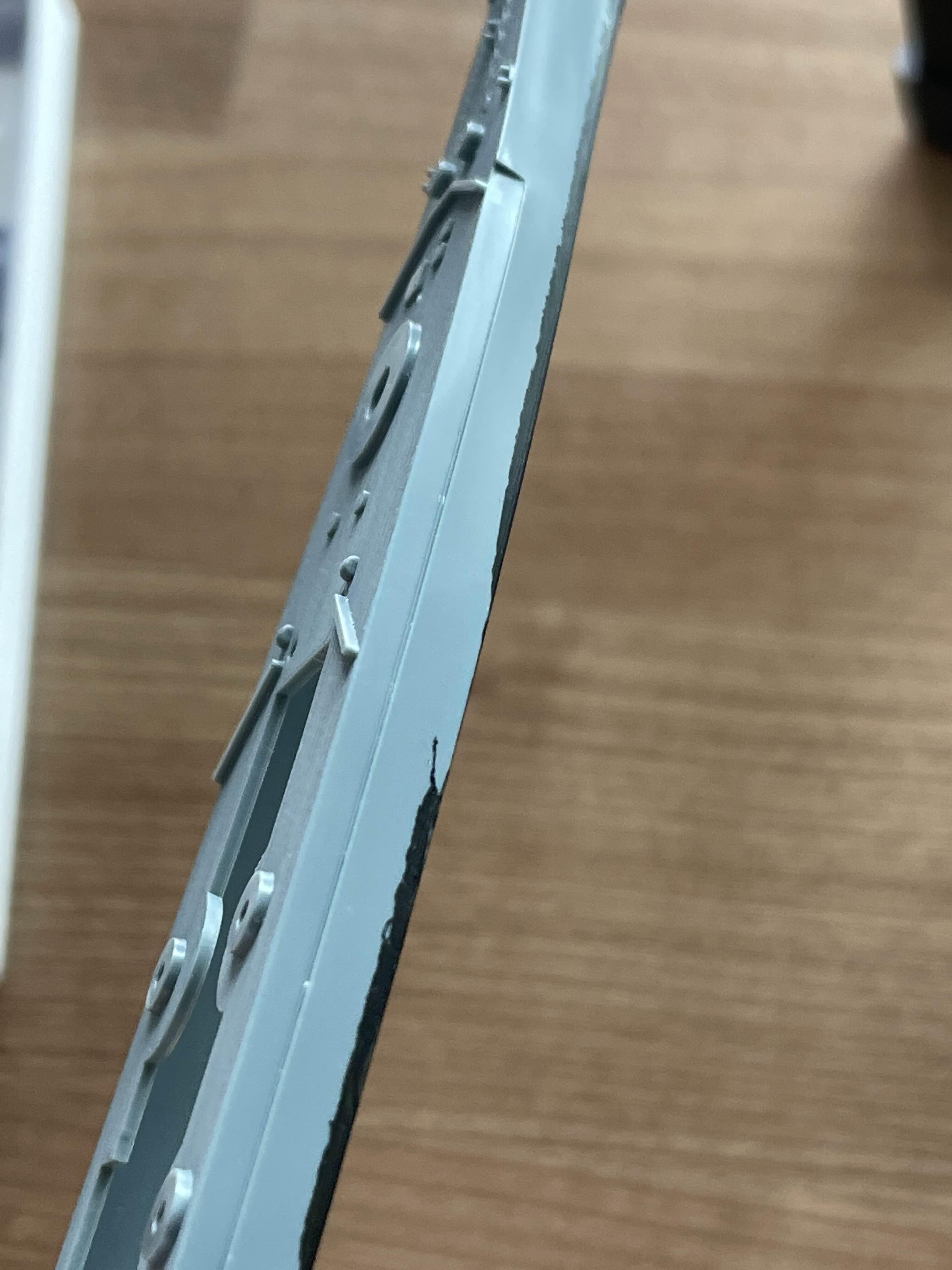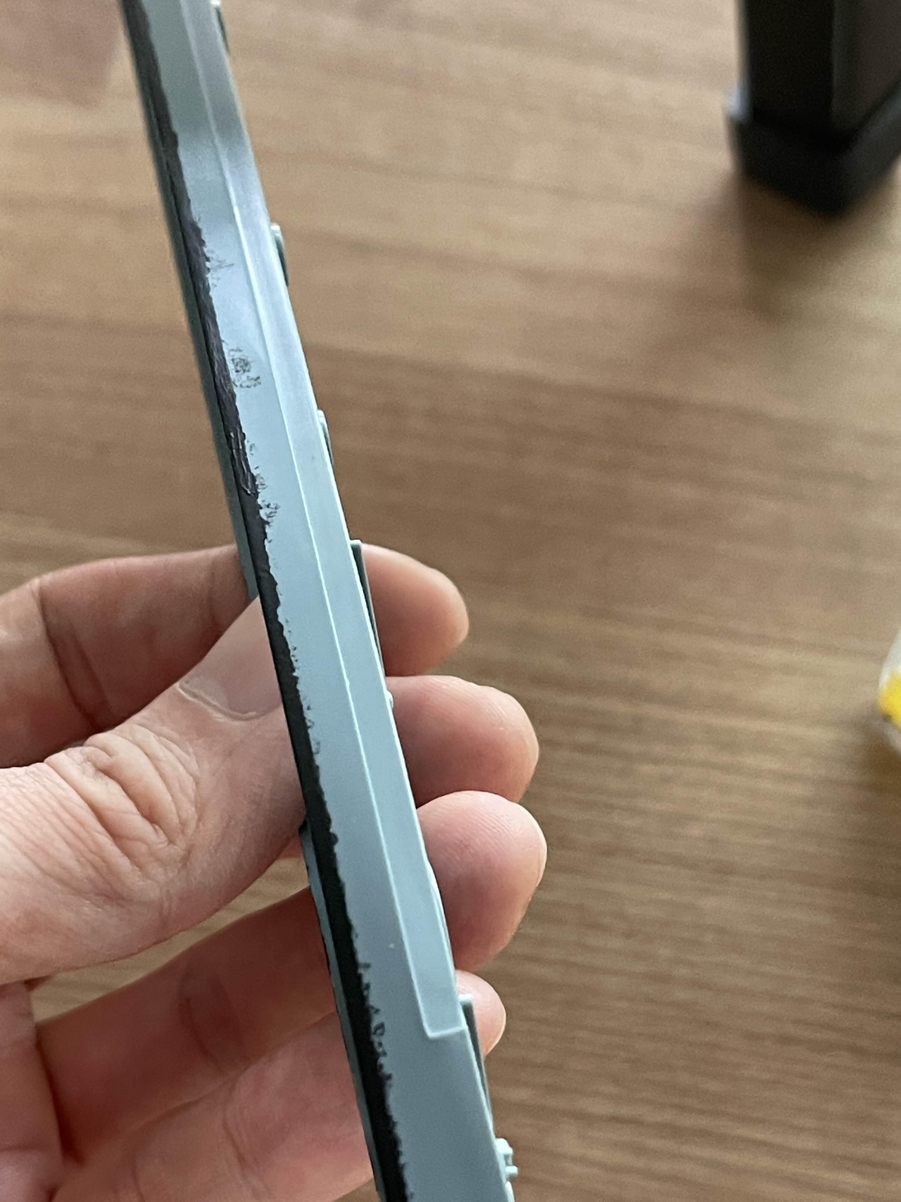 마스킹 테이프와 함께 도장면이 뜯어져 나온 모습