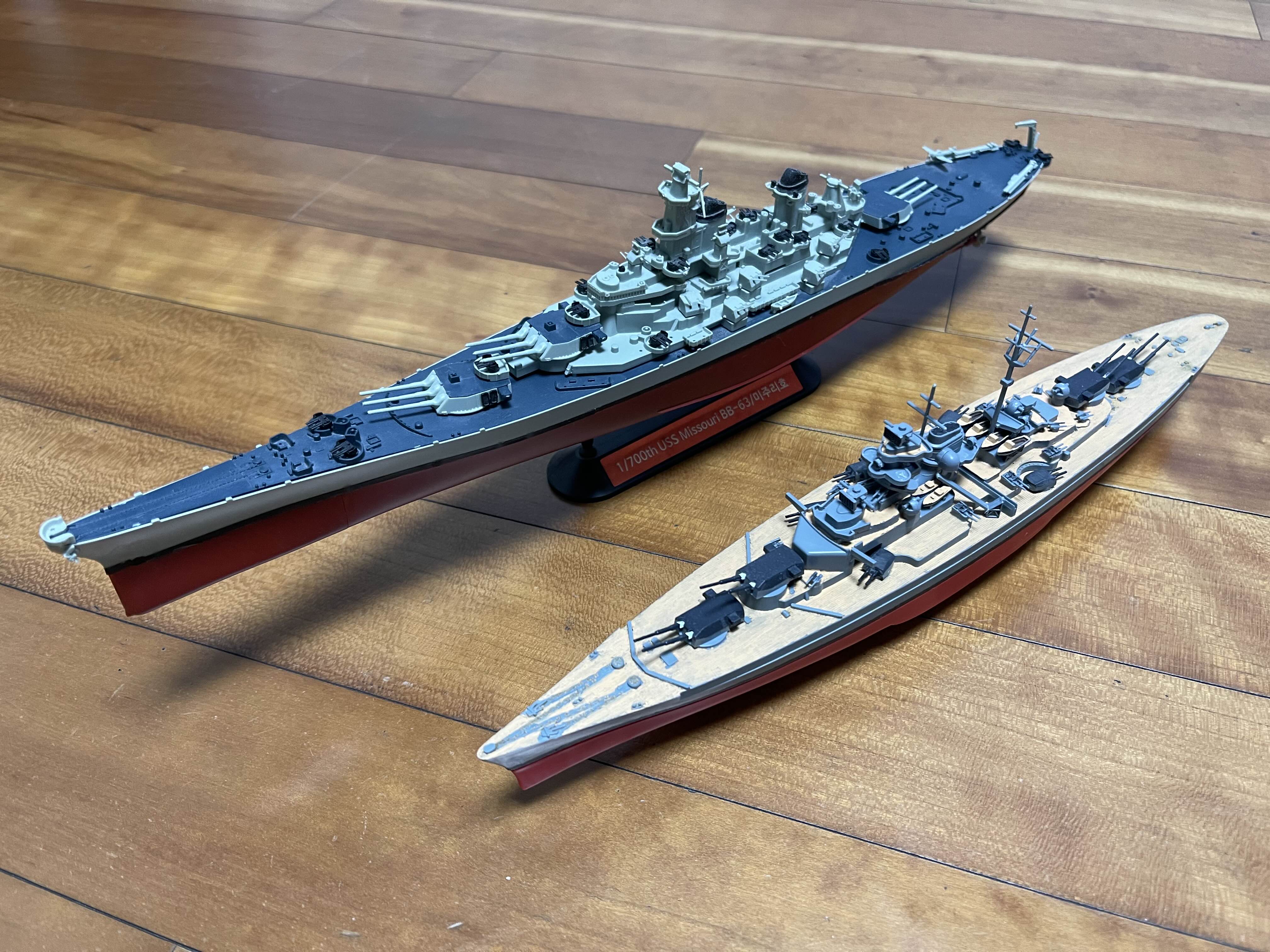완성 1/800 비스마르크 집에 마침 USS 미주리 1/700 모델이 있어 비교를 해 보았다.