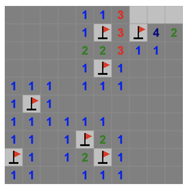 지뢰 찾기의 게임의 승리조건은 아주 단순하다. 게임판에 있는 모든 지뢰를 정확하게 찾는 것이다. 그렇다면 깃발을 지뢰 위에 올려 놓으면 되는것 같아 보인다. 하지만 깃발은 여기가 지뢰가 있을 수 있으니 건드릴 수 없도록 막아 놓는 것일 뿐 실제 지뢰의 존재 여부는 명확하지 않다. 그렇다면 어떻게 모든 지뢰를 찾았다는 것을 알 수 있을까?