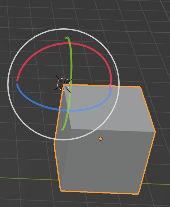 처음 블렌더를 실행했을 때 화면 중심(x, y, z가 0인 world origin)에 보이는 이 표시가 3차원 커서 (3D Cursor)다. 새로운 Object를 생성할 때는 마치 글을 입력할 때 커서 뒤에 글자가 생성되는 것처럼, 3D커서를 중심으로 object가 생성된다. 또한 object를 변형하거나 회전해야 하는 경우 3D 커서를 중심점으로 사용할 수도 있다.