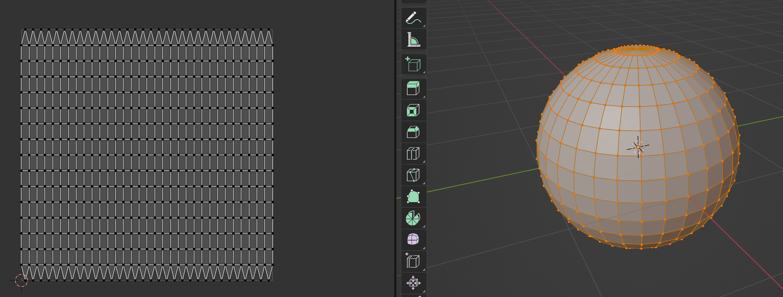 An icosphere is a polyhedral sphere made up of triangles. Icospheres are normally used to achieve a more isotropical layout of vertices than a UV sphere, in other words, they are uniform in every direction. Note Subdividing an icosphere raises the vertex c