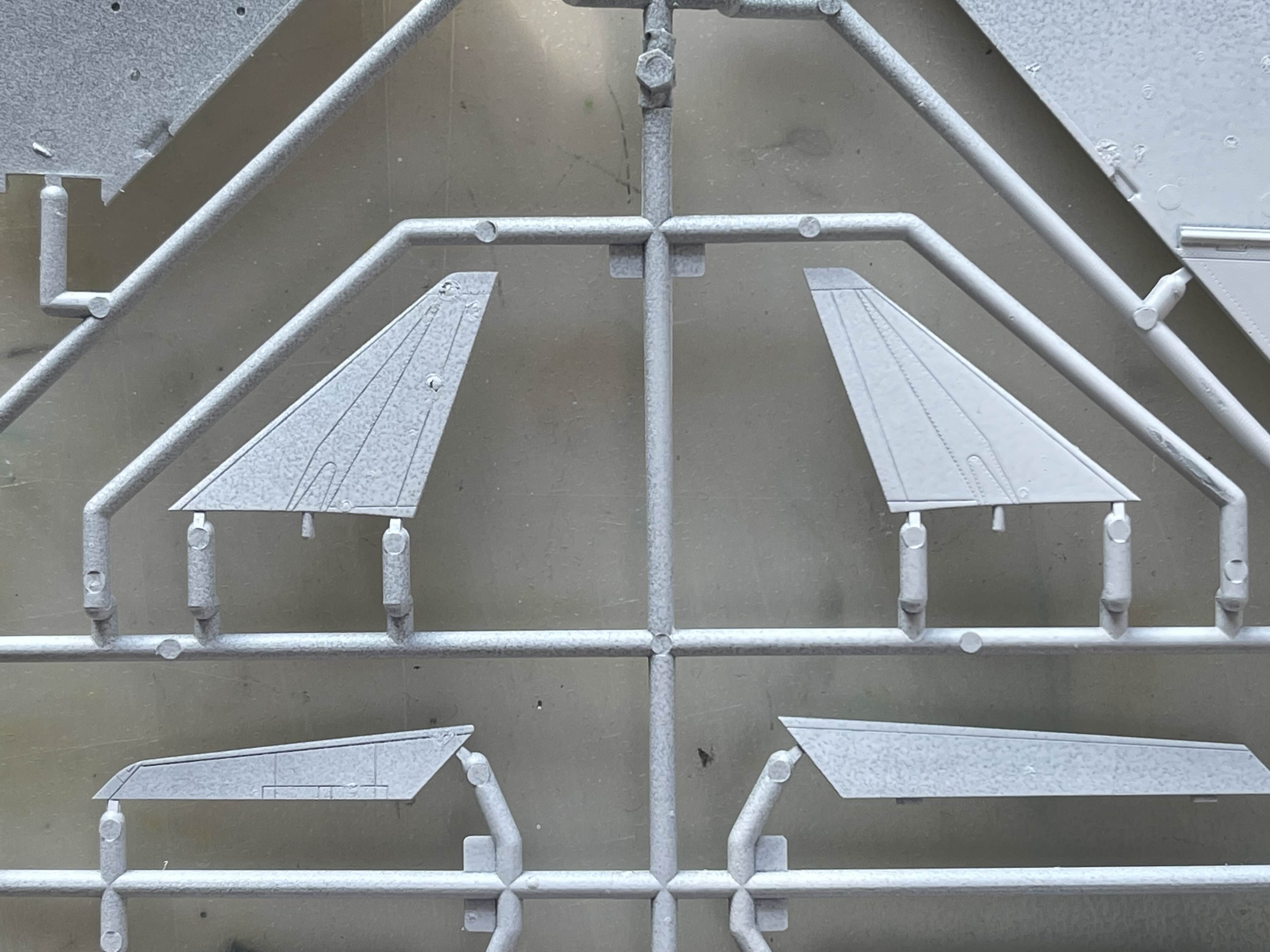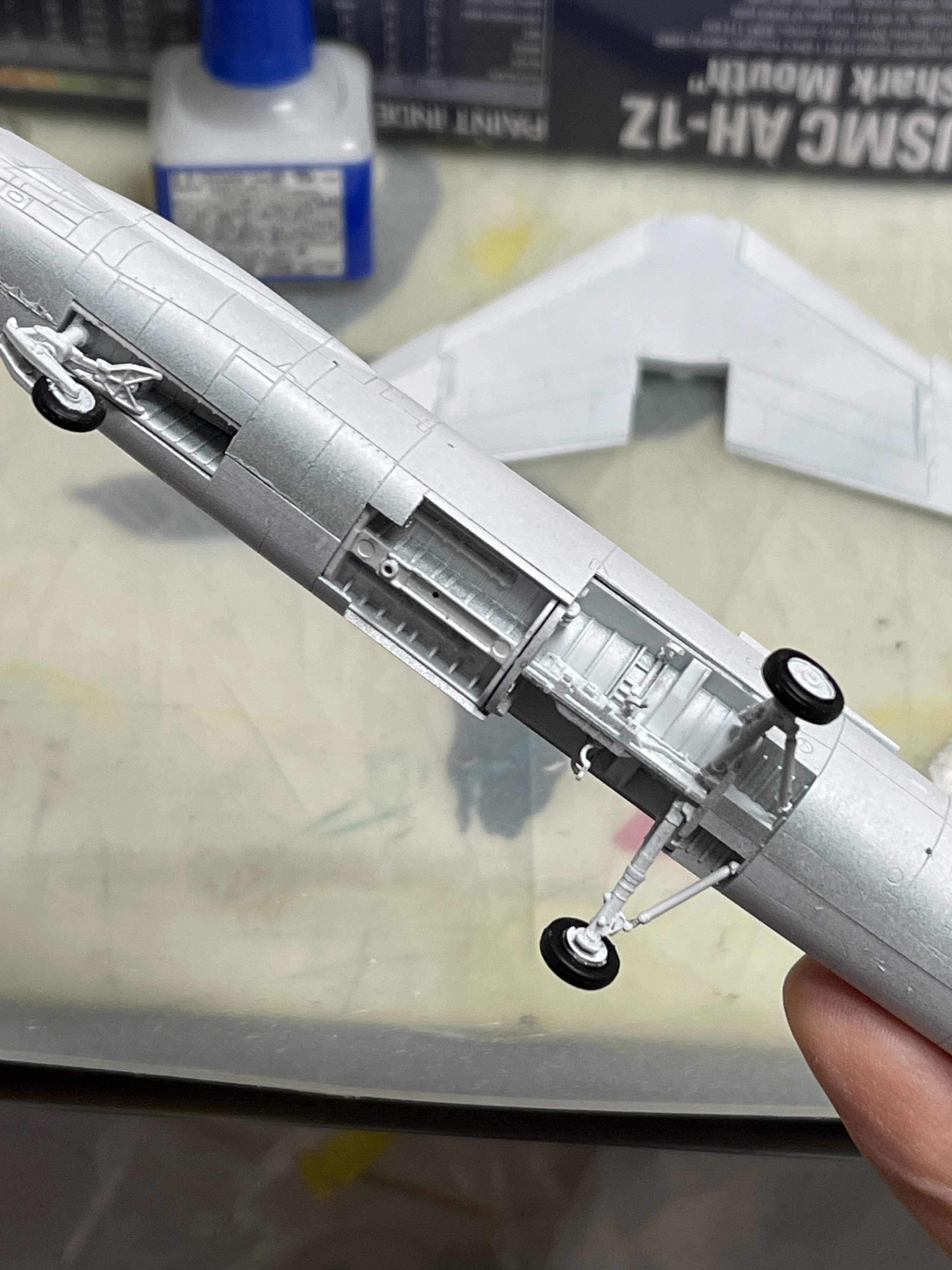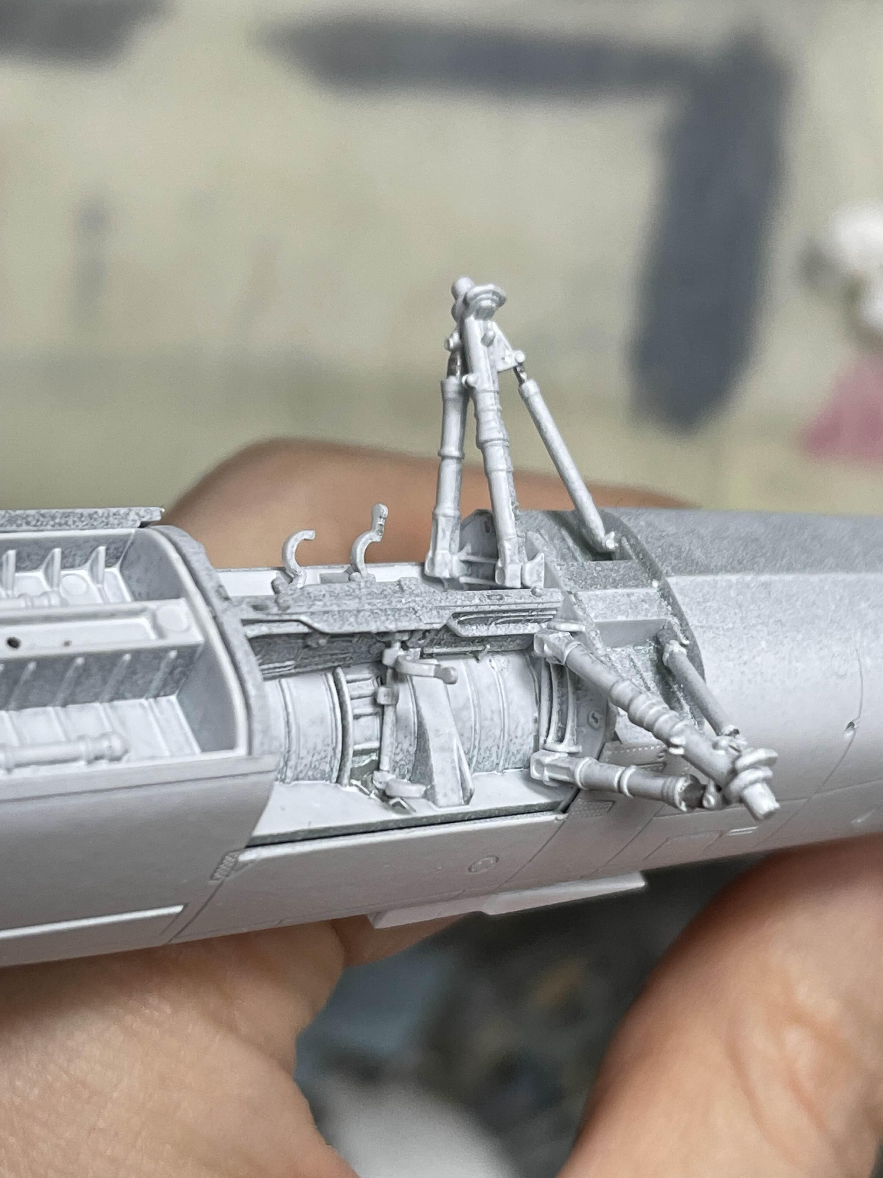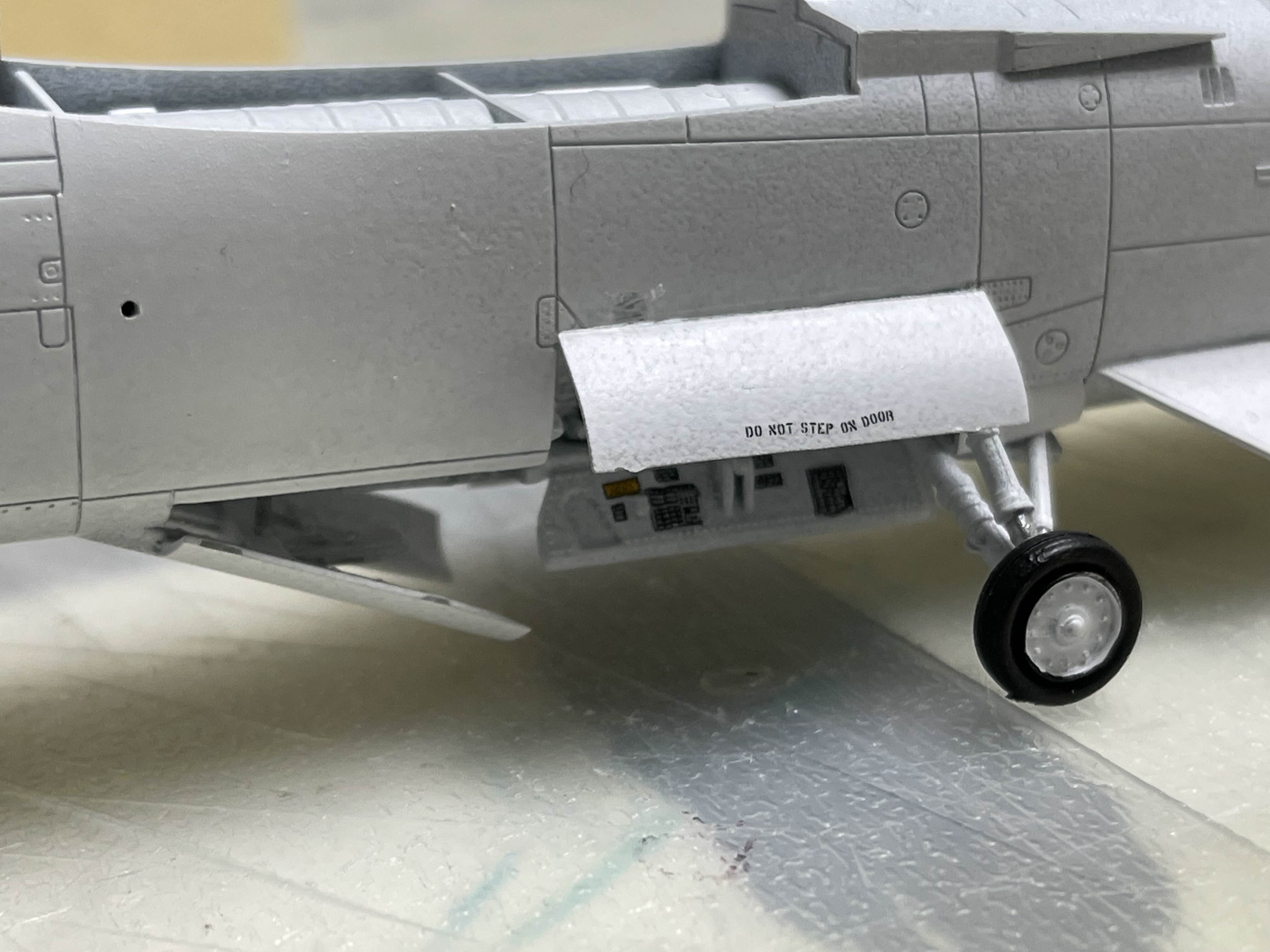 항공기의 바퀴 수납부는 항상 흰색으로 되어 있기에, 붓도색을 할 때면 아크릴 물감을 여러번 칠하고 말려야 배경의 플라스틱 색이 차폐되었었다. 하지만 스프레이 도색에서는 한 번 대충 뿌렸음에도 어느정도 배경색이 가려지는 효과를 볼 수 있었다. (물론 도료에 따라 다르긴 할테지만)