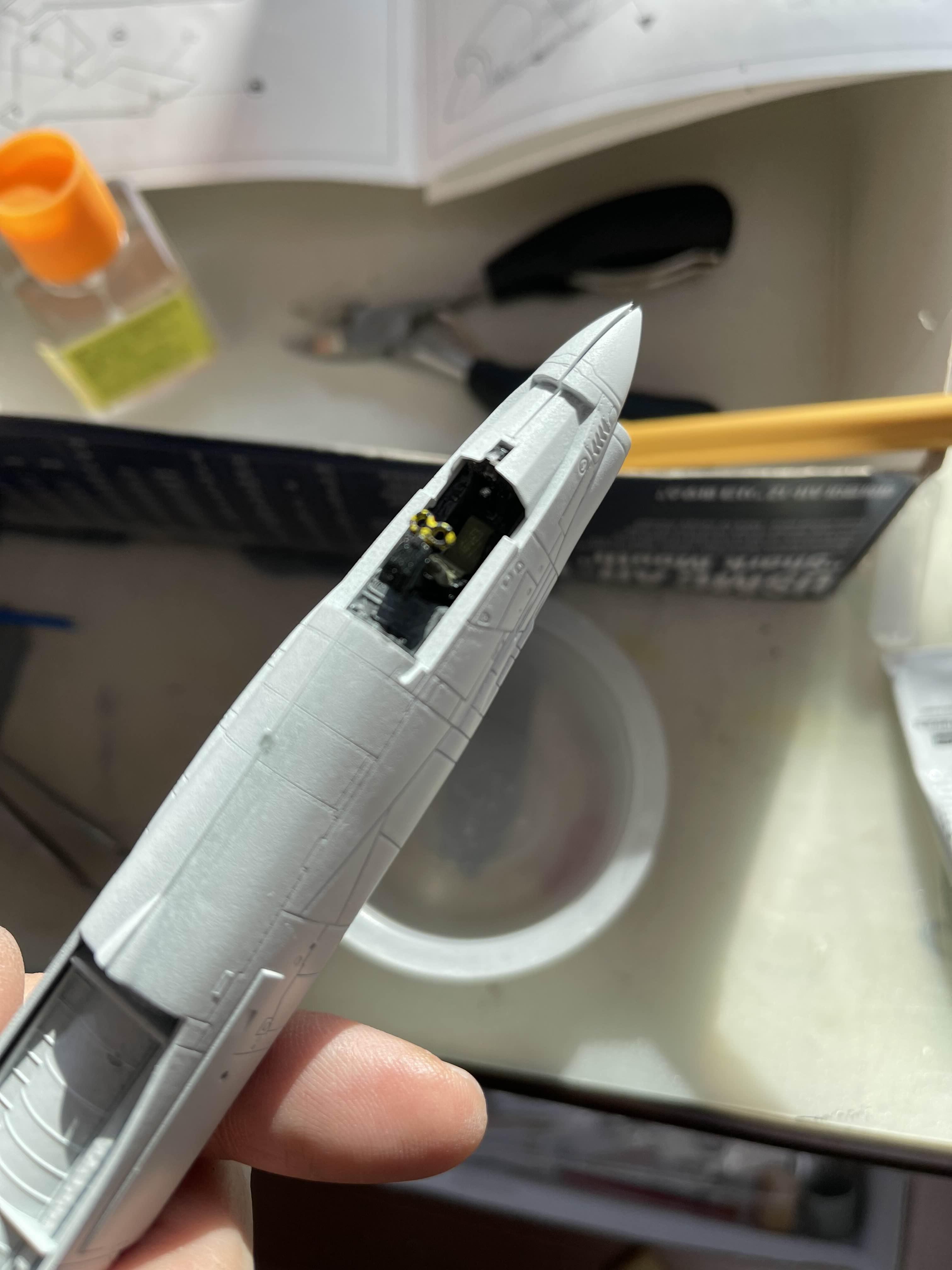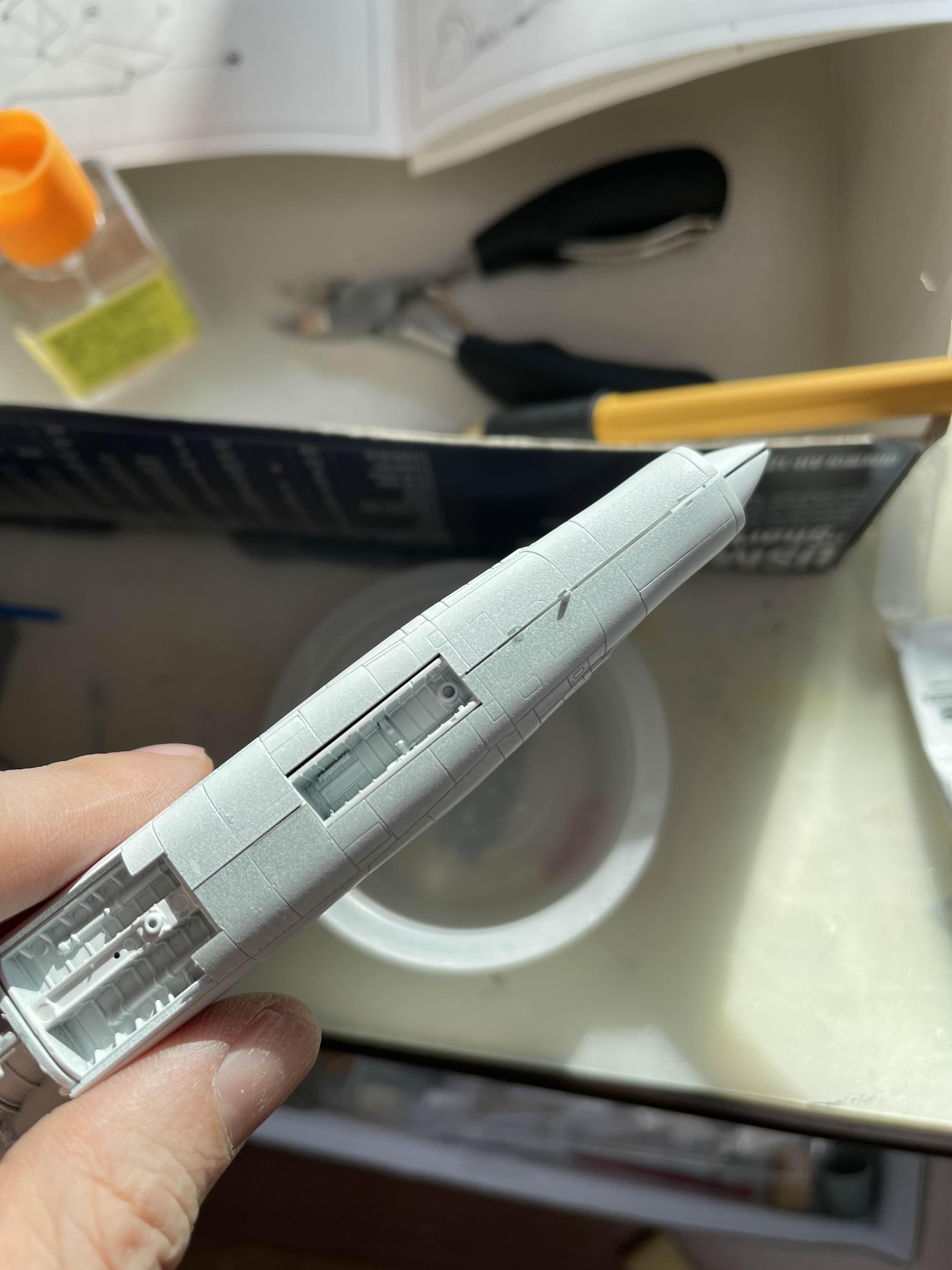 항공기 모델은 특히나 단차로 접합선으로 인해 퍼티나 샌딩 작업이 필요하지만 아크릴 붓도색으로 균일하게 칠하는것이 부담스러웠고, 서페이서를 이용하는 경우는 어쨌든 스프레이 방식으로 작업을 해 줘야하므로 그냥 무시하고 작업을 했었다. 나중에 스프레이 도색 환경이 어느정도 갖춰지면 한 번 시도해 보아야겠다.
