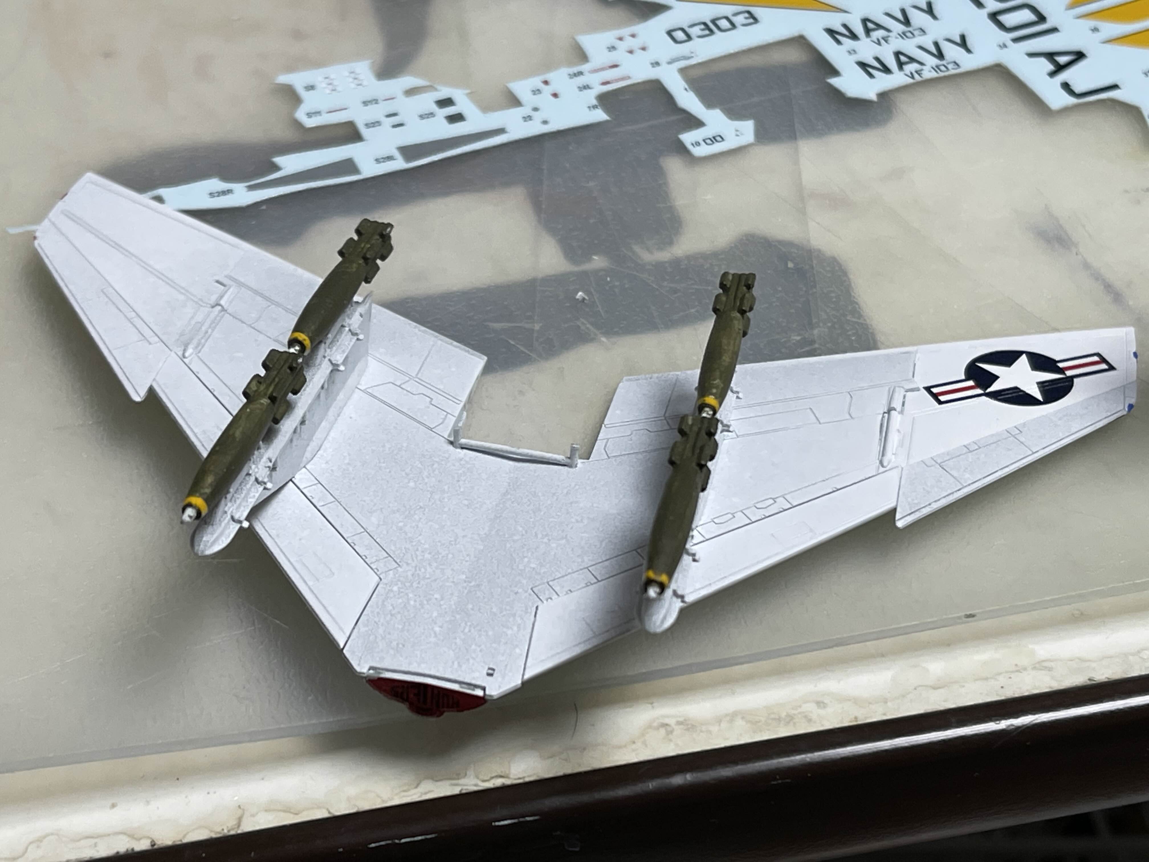 주날개에 무장을 추가, 주 날개 아랫면 끝에도 별무늬가 있는 데칼을 붙였어야 했는데, 부착하다가 실패해서 그냥 없는 상태로 두었다.