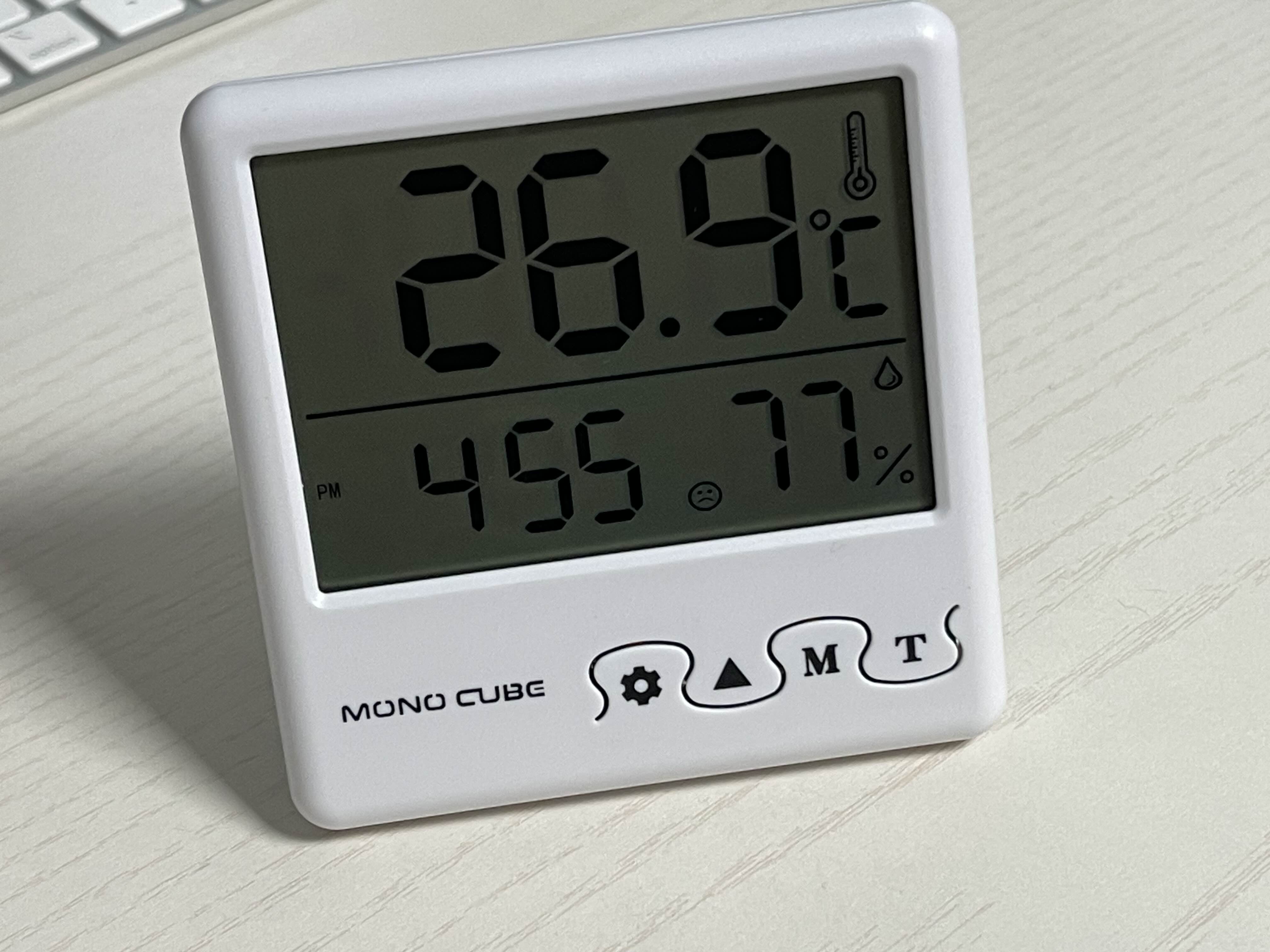 온도 26.0도에 습도 77% 책상위에 올려 놓았는데 흰색으로 적절한 크기가 잘 선택한 것으로 보인다.