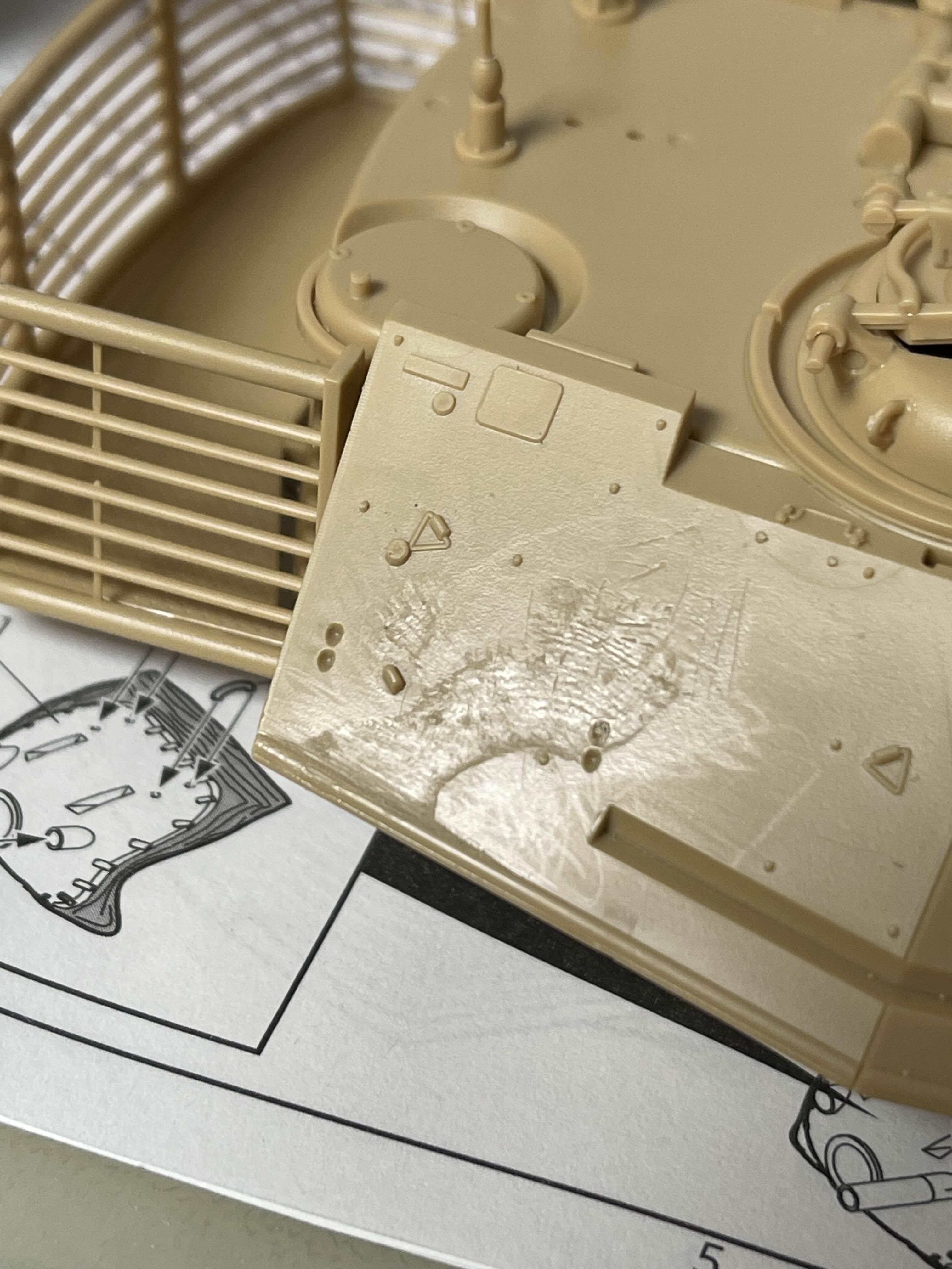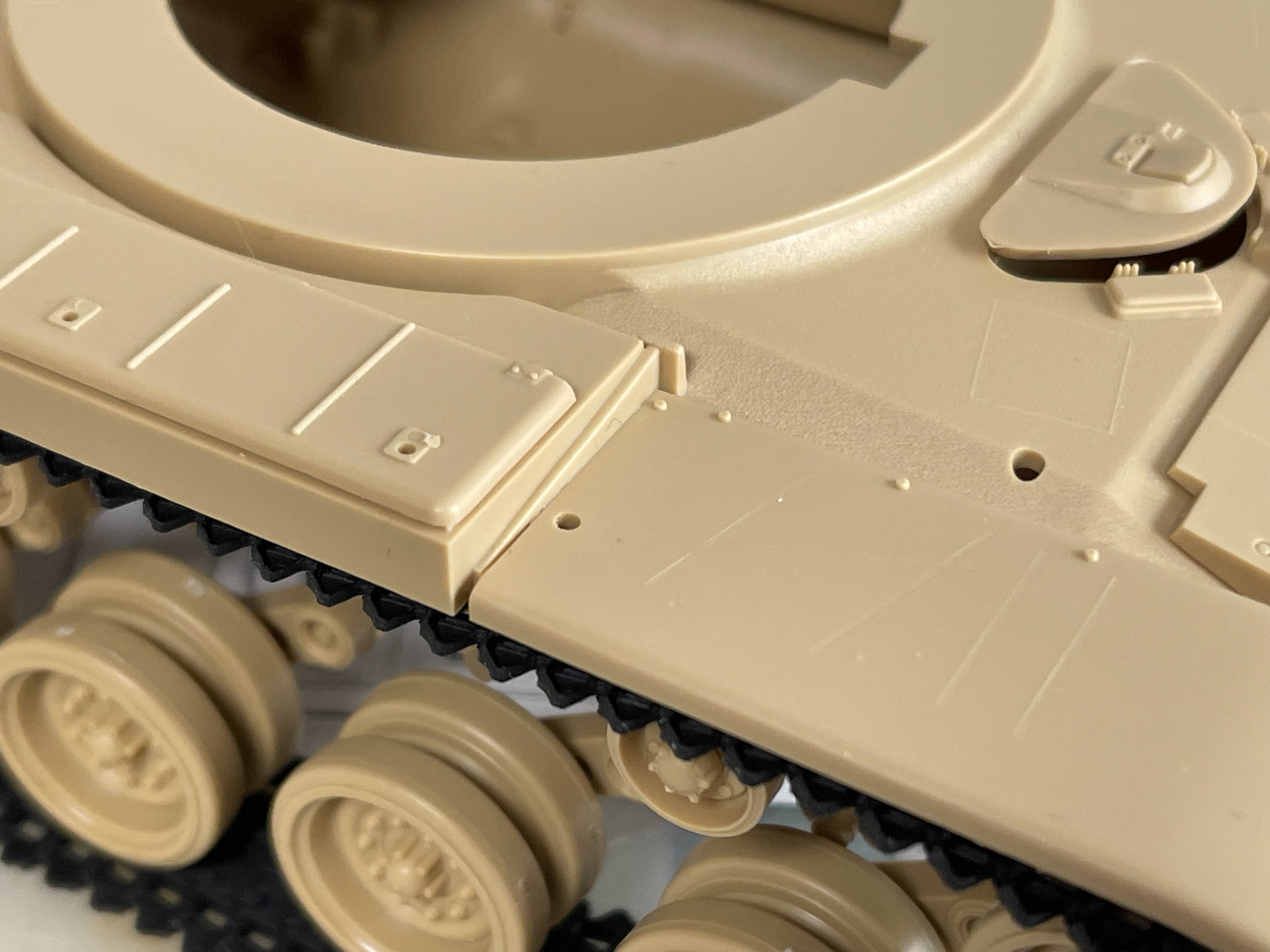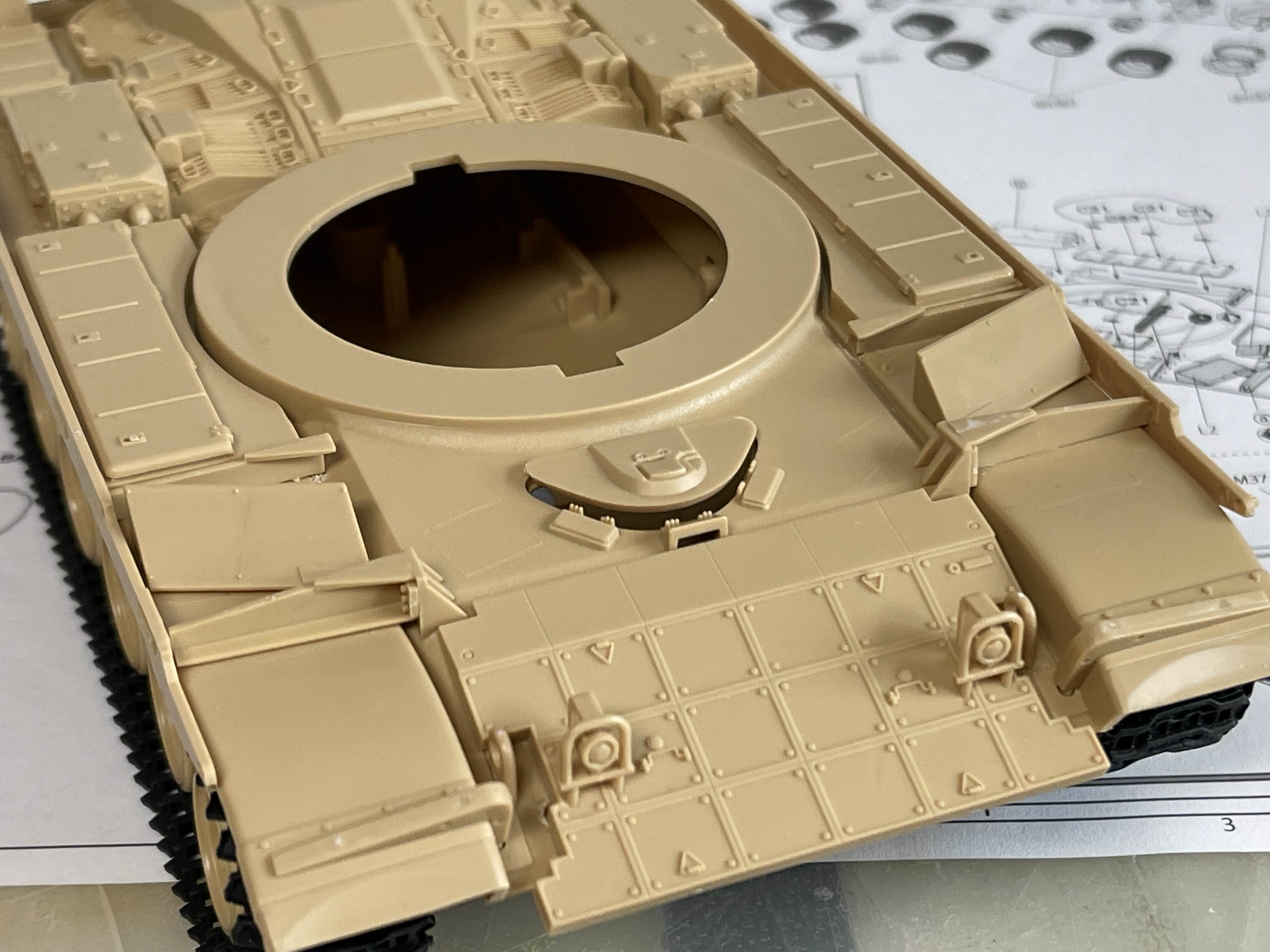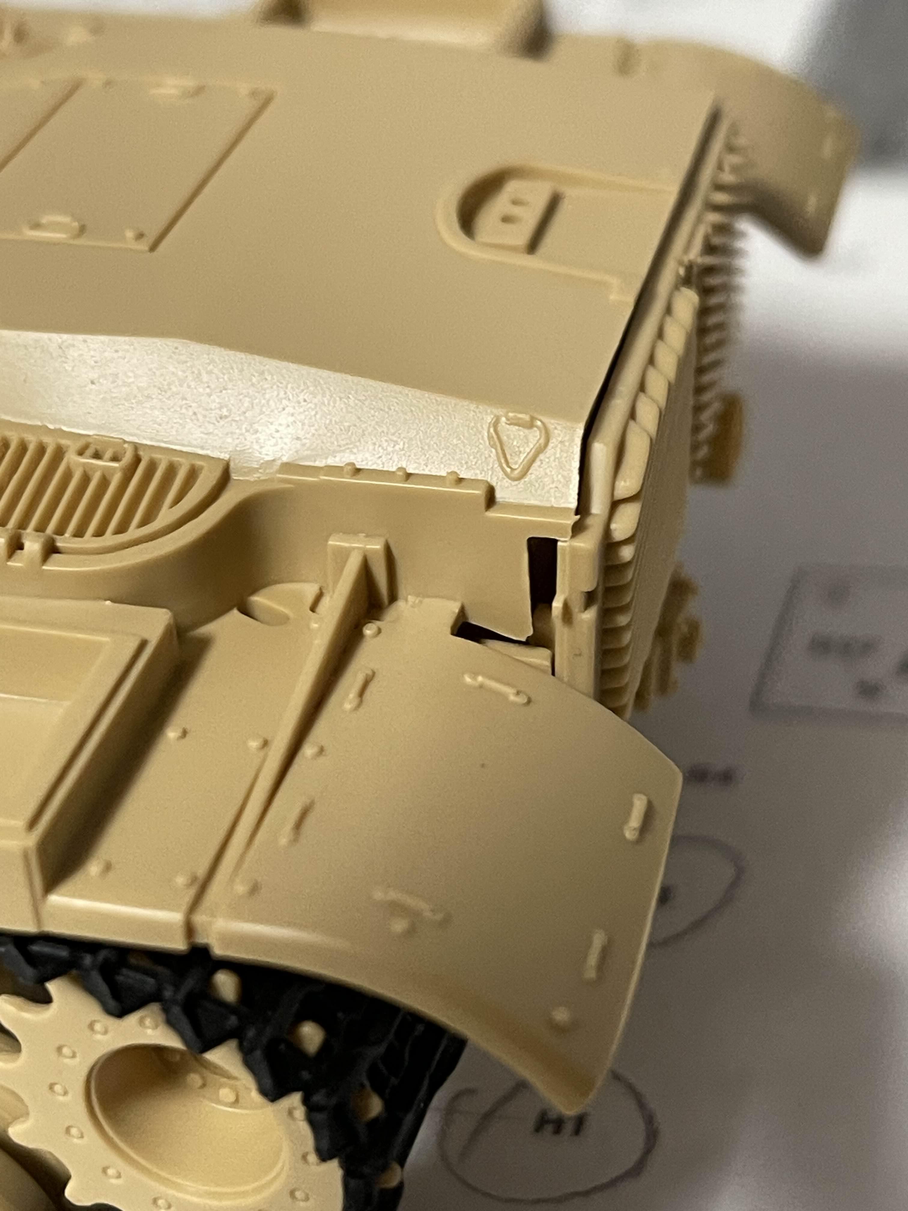 상부가 기존 M60A1을 기반으로 하기 때문에 리벳(볼트?)으로 표현된 부분을 삭제하거나 새로 구멍을 뚫어 주어야 하는 부분이 여러군데 있다.