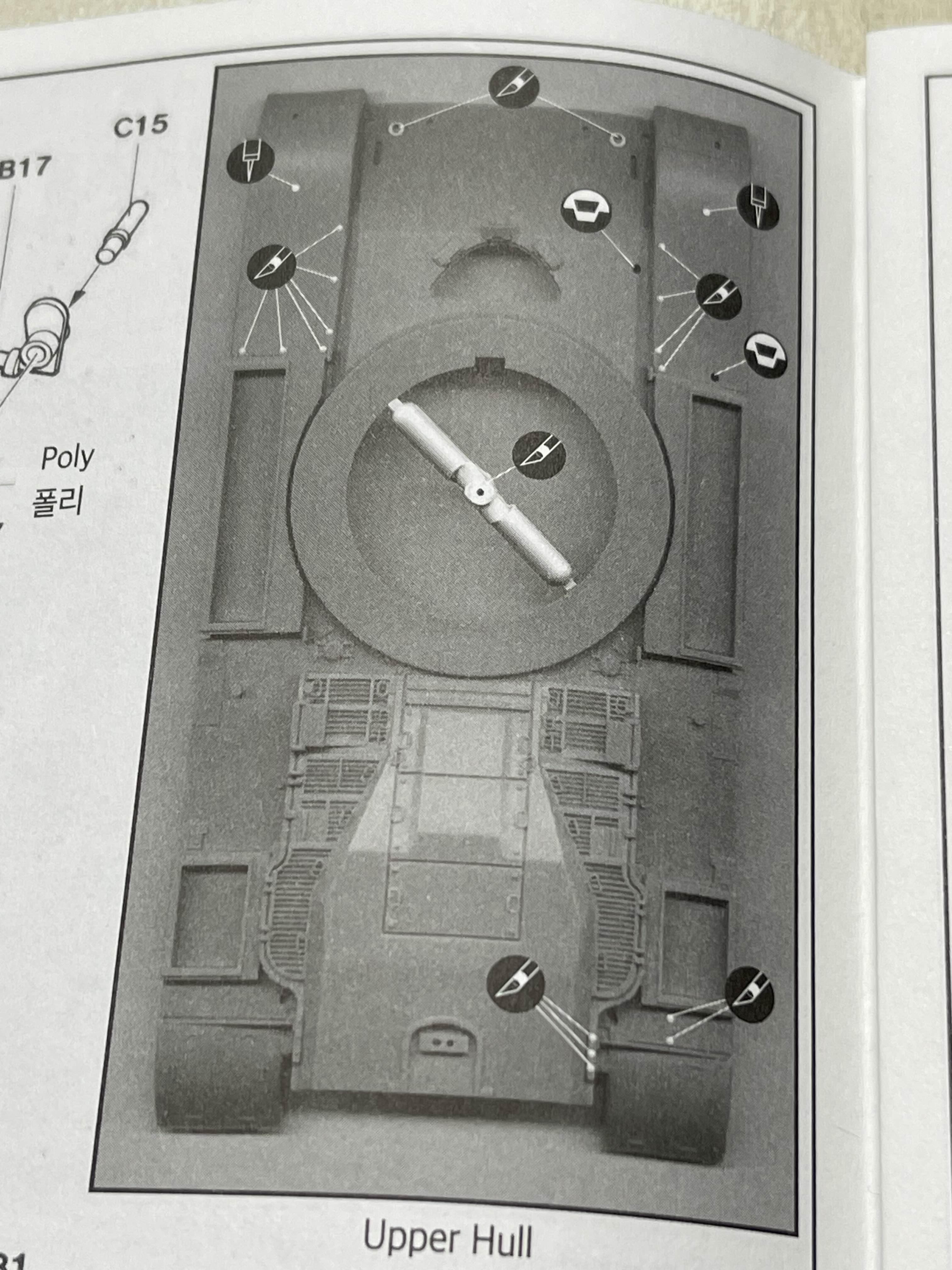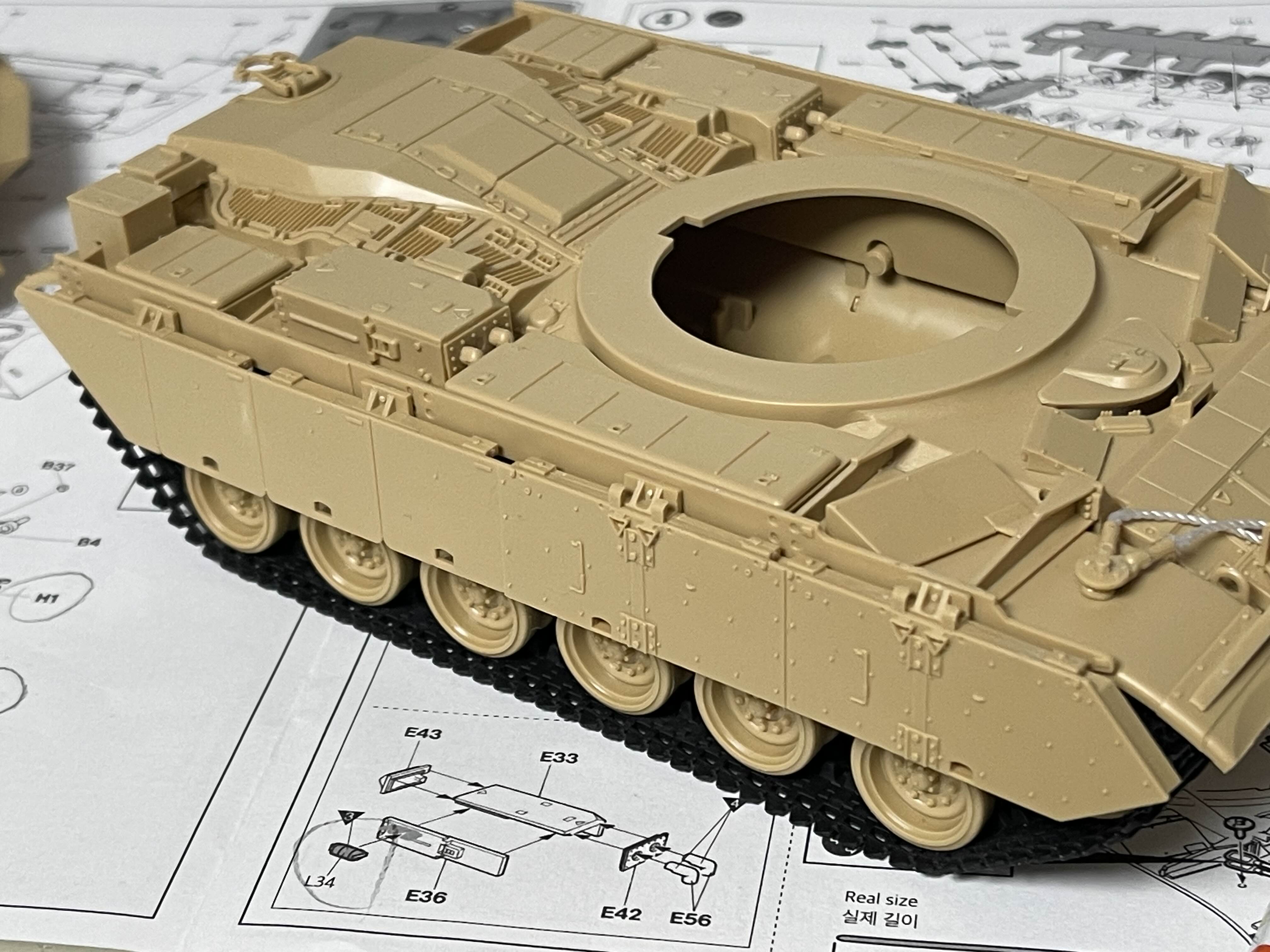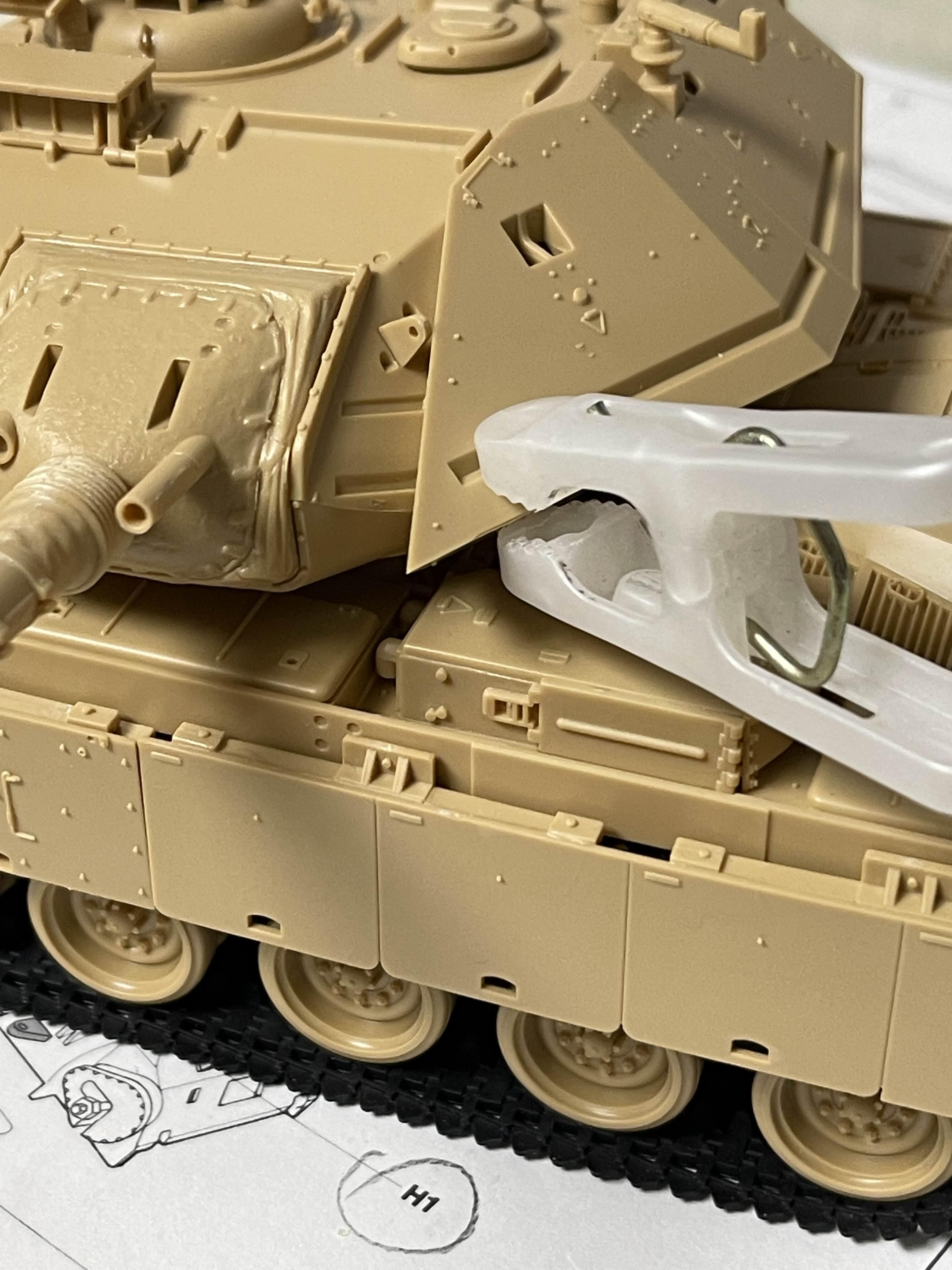 상부가 기존 M60A1을 기반으로 하기 때문에 리벳(볼트?)으로 표현된 부분을 삭제하거나 새로 구멍을 뚫어 주어야 하는 부분이 여러군데 있다.