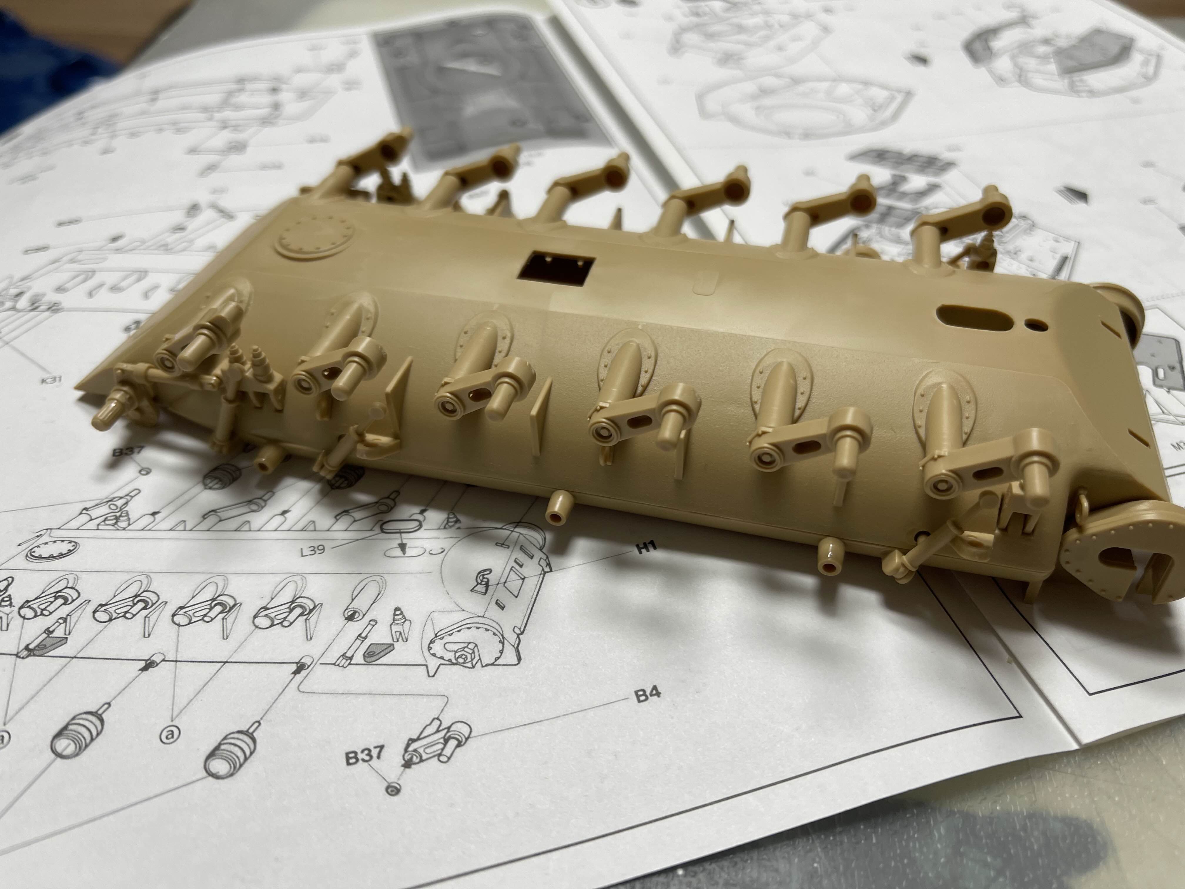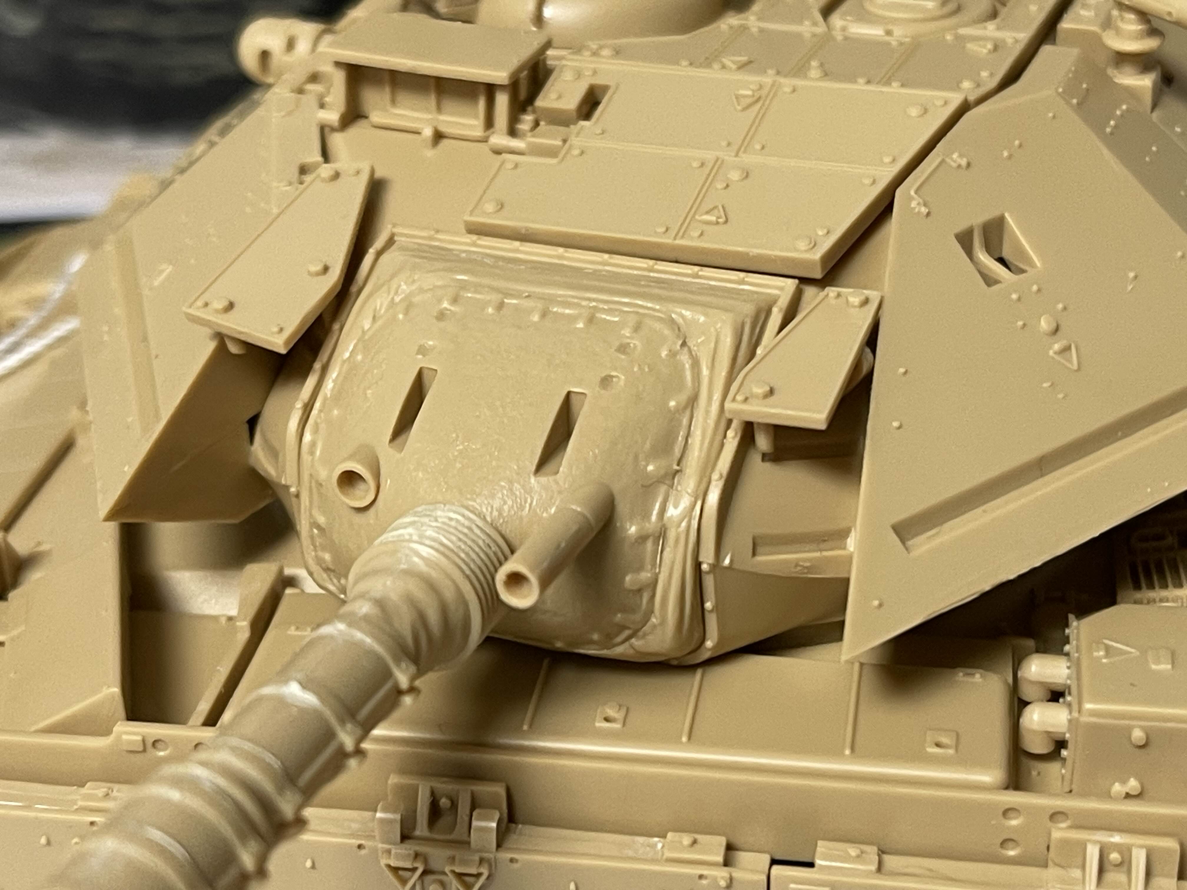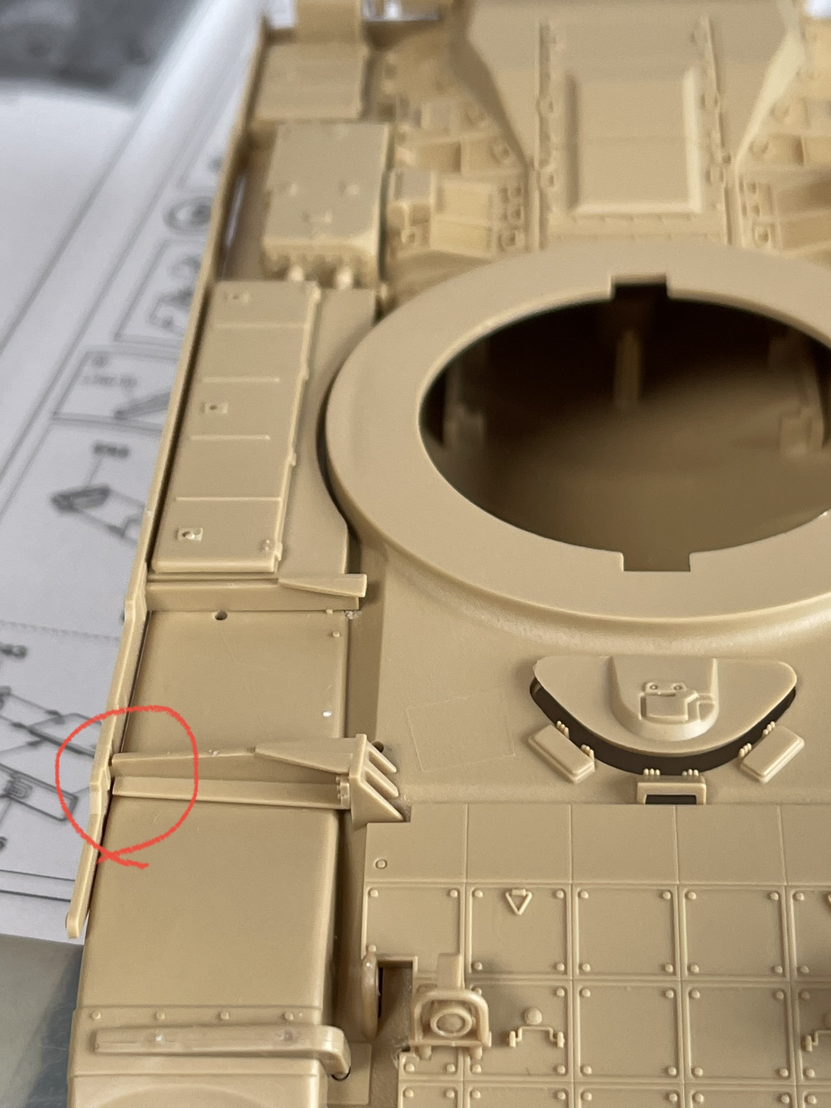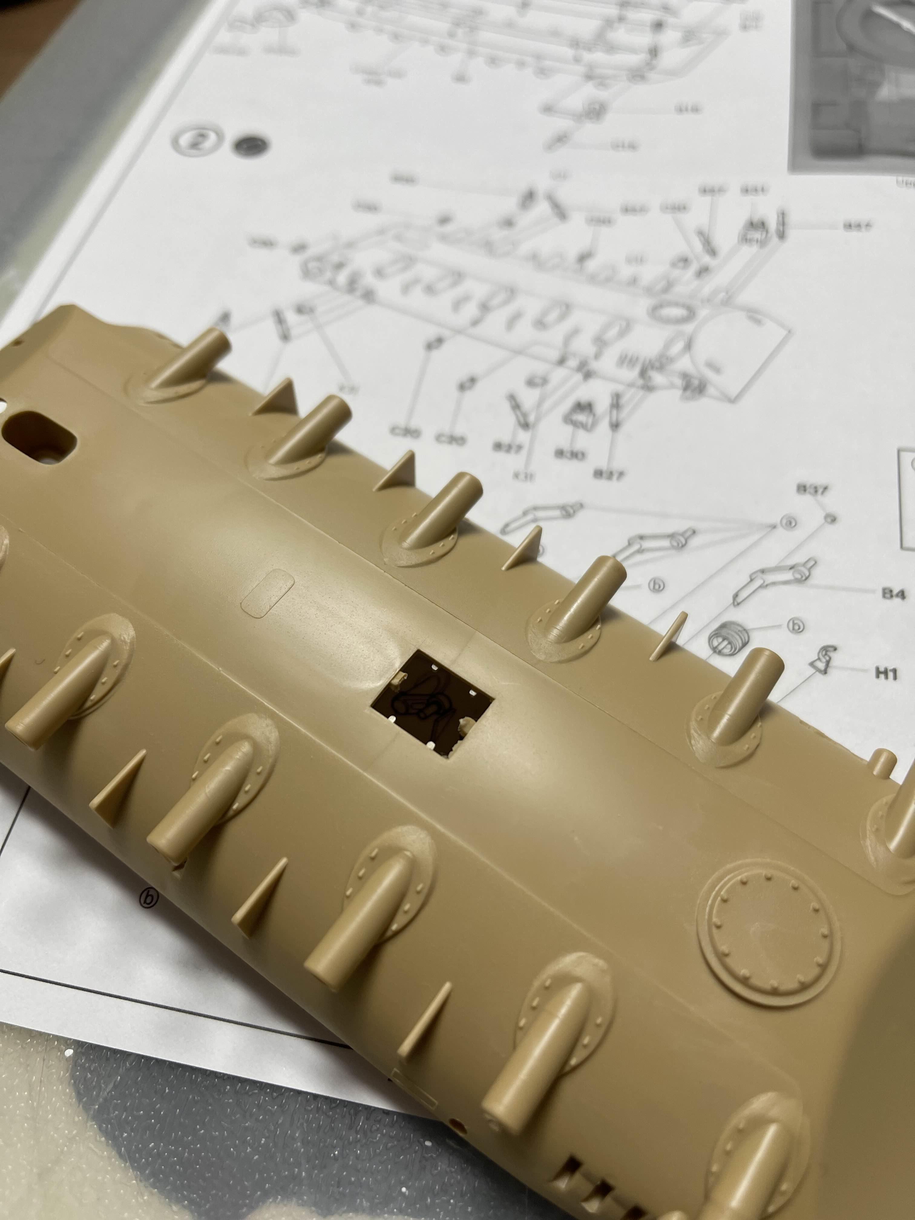 상부가 기존 M60A1을 기반으로 하기 때문에 리벳(볼트?)으로 표현된 부분을 삭제하거나 새로 구멍을 뚫어 주어야 하는 부분이 여러군데 있다.