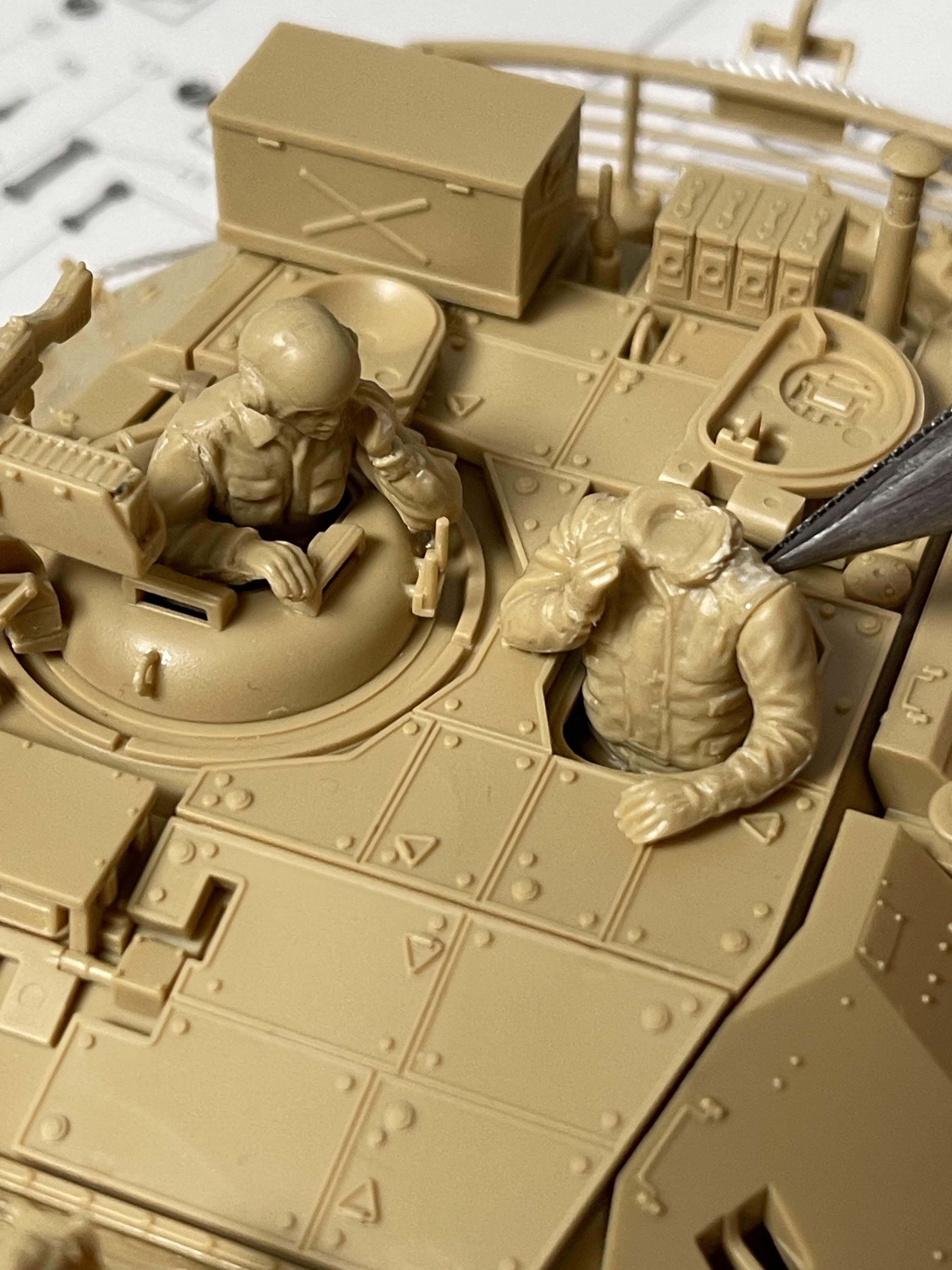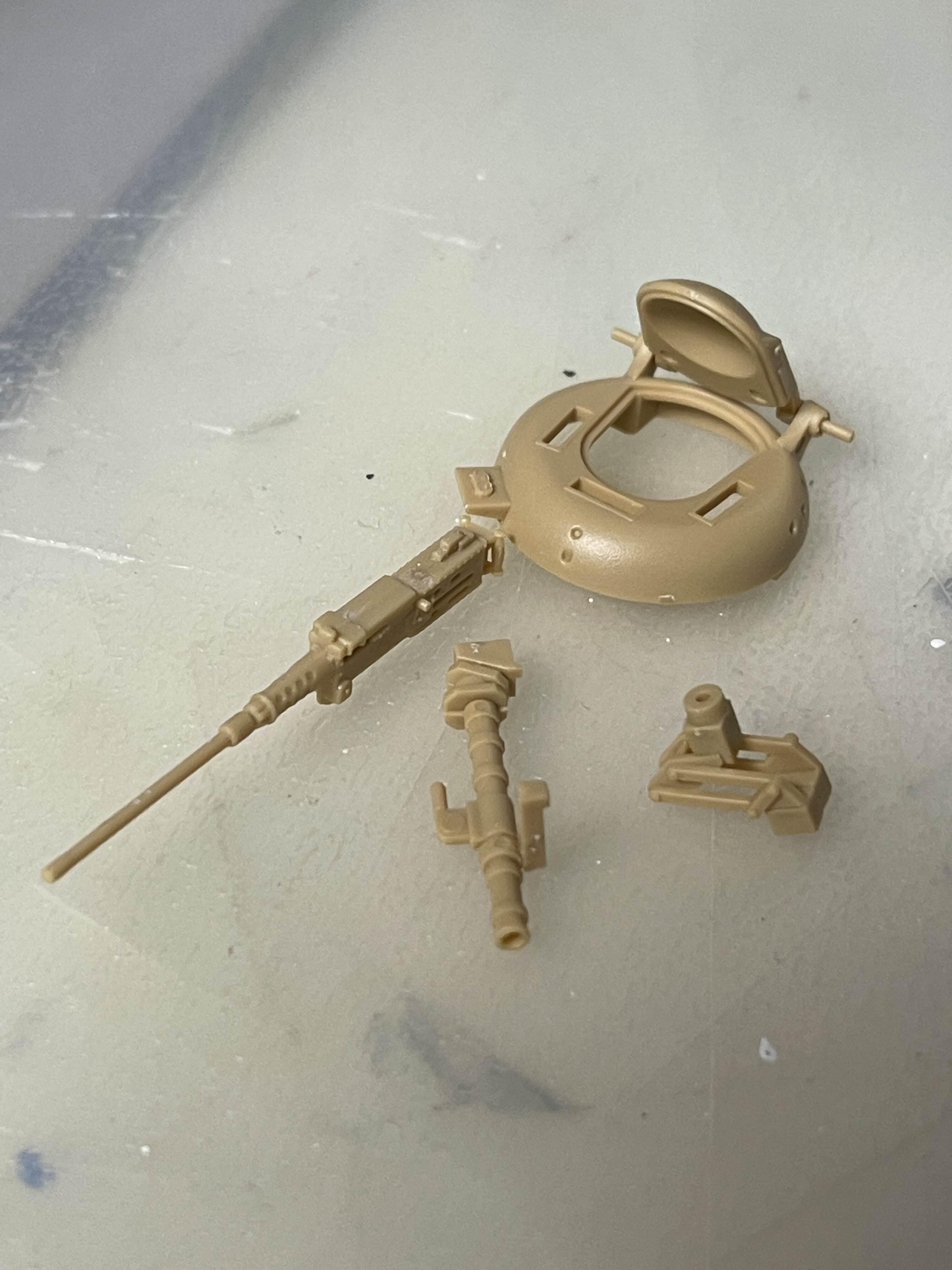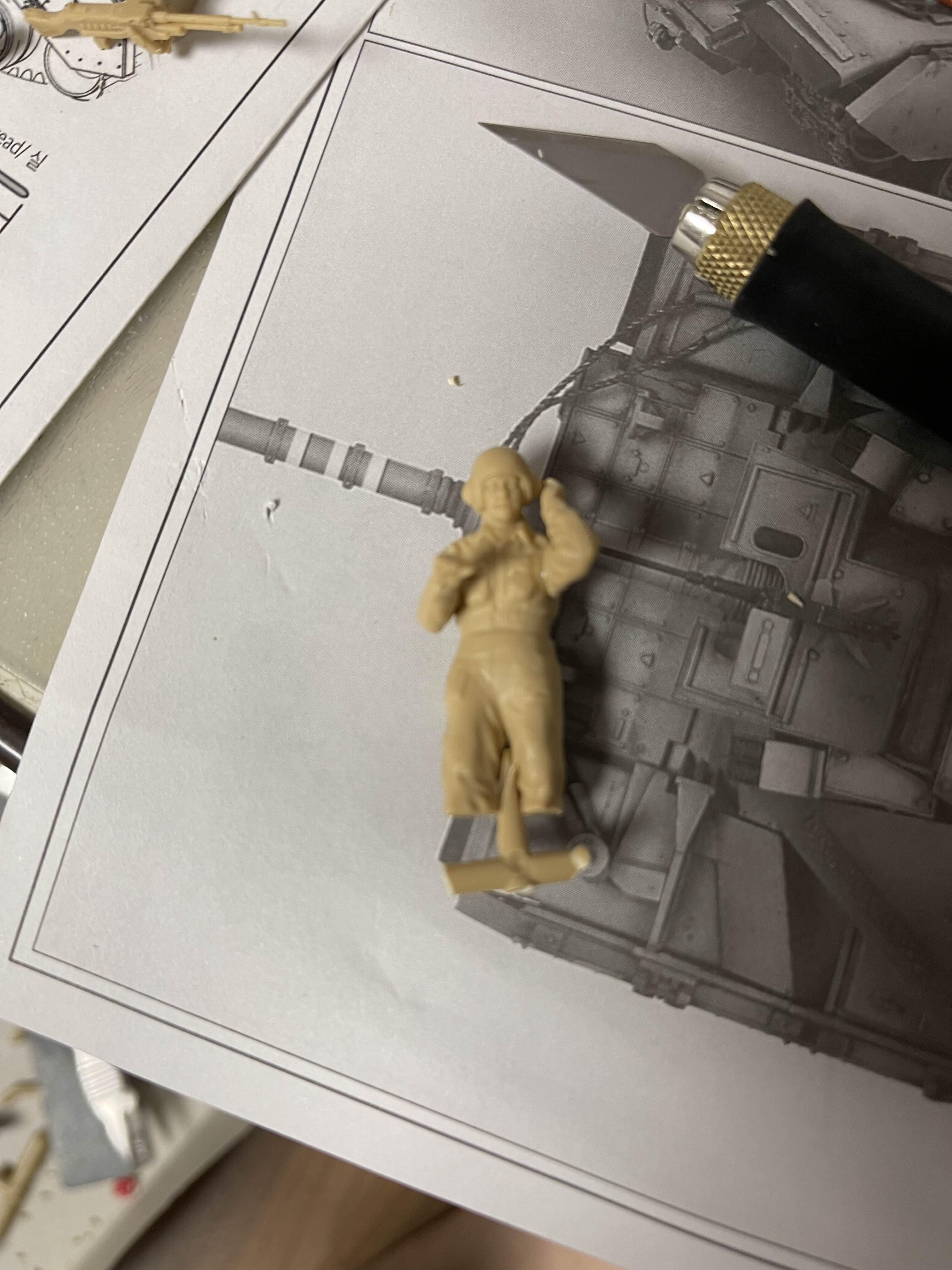 이 정도가 좋을 것 같았다 사실 포탑 내부는 비어 있으므로 사람들을 저렇게 두면 뭔가 서 있는 느낌이 아니라 걸쳐서 어색한 모습이된다. 그래서 아래와 같이 러너를 붙이고 이를 포탑 내부에 부착해서 위치를 고정해주는 방법을 이용한다.