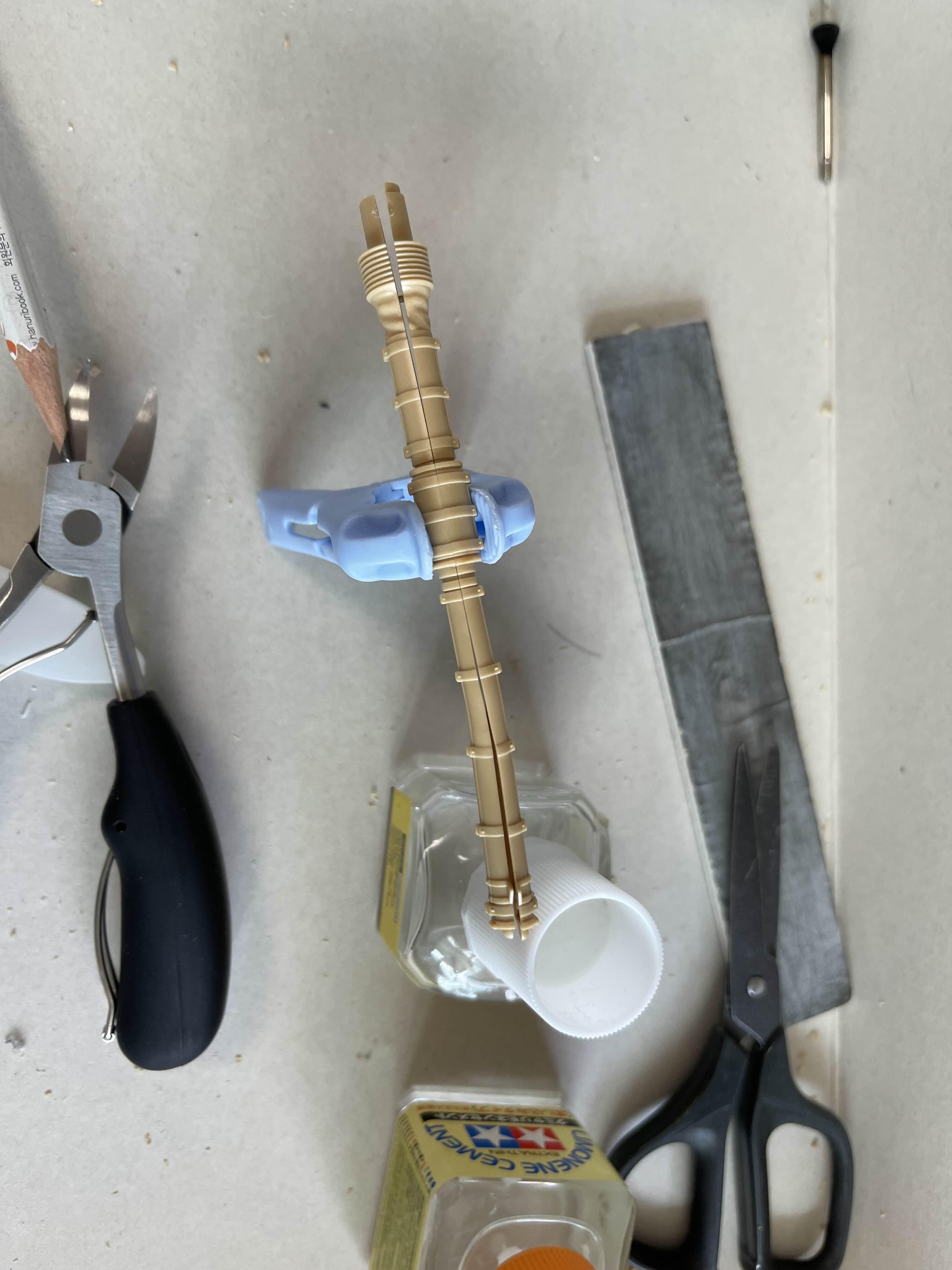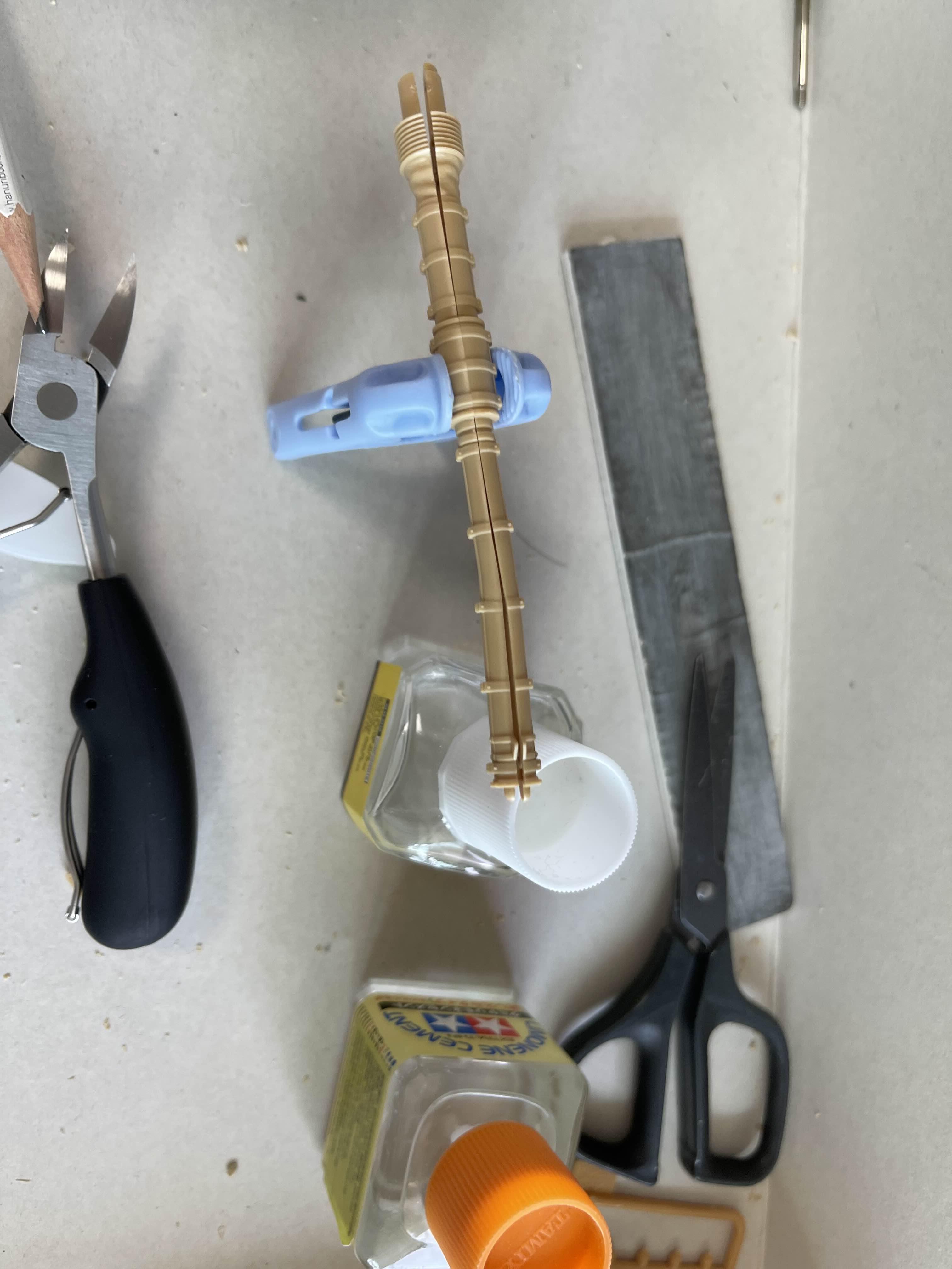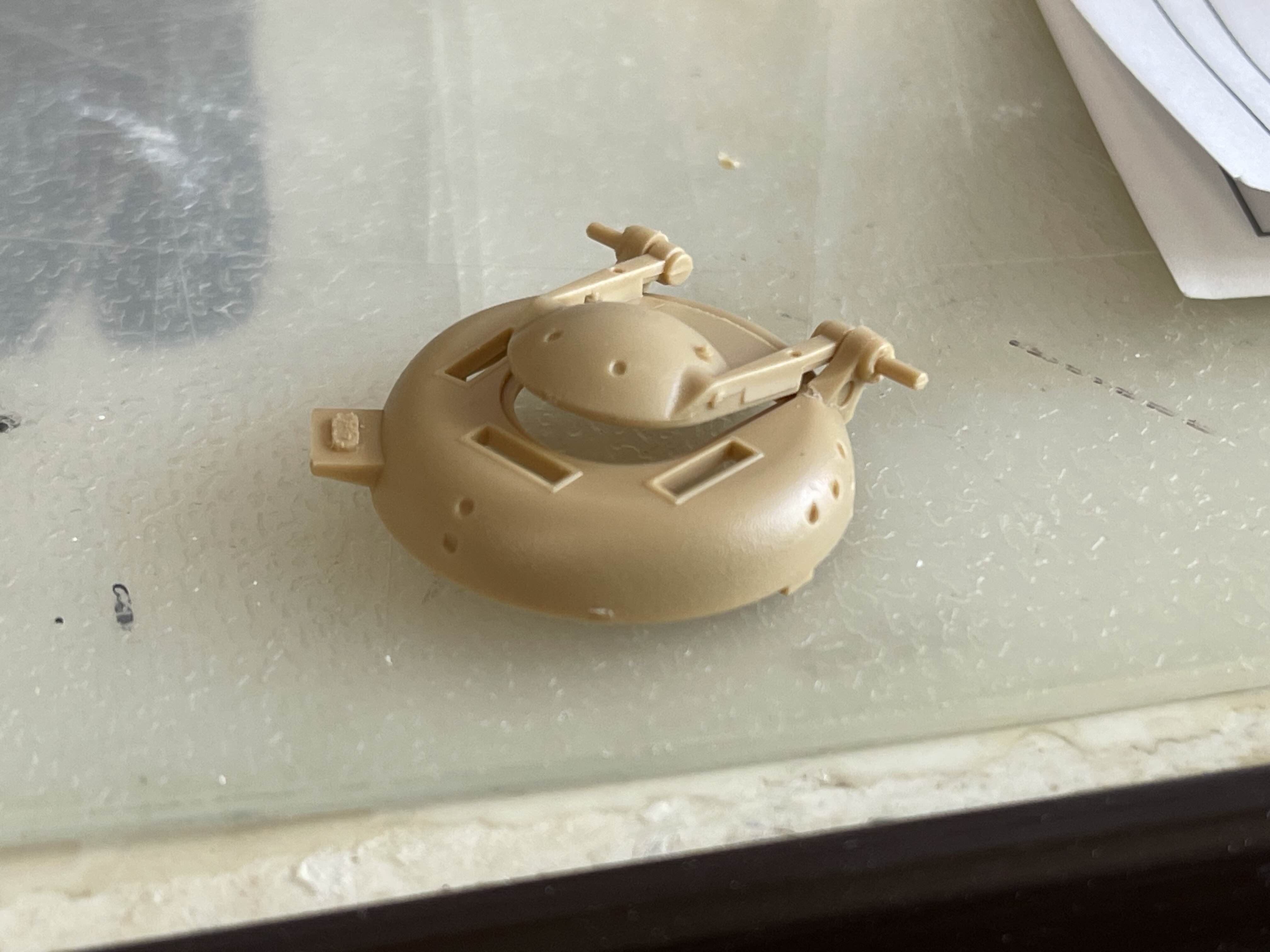 이 정도가 좋을 것 같았다 사실 포탑 내부는 비어 있으므로 사람들을 저렇게 두면 뭔가 서 있는 느낌이 아니라 걸쳐서 어색한 모습이된다. 그래서 아래와 같이 러너를 붙이고 이를 포탑 내부에 부착해서 위치를 고정해주는 방법을 이용한다.