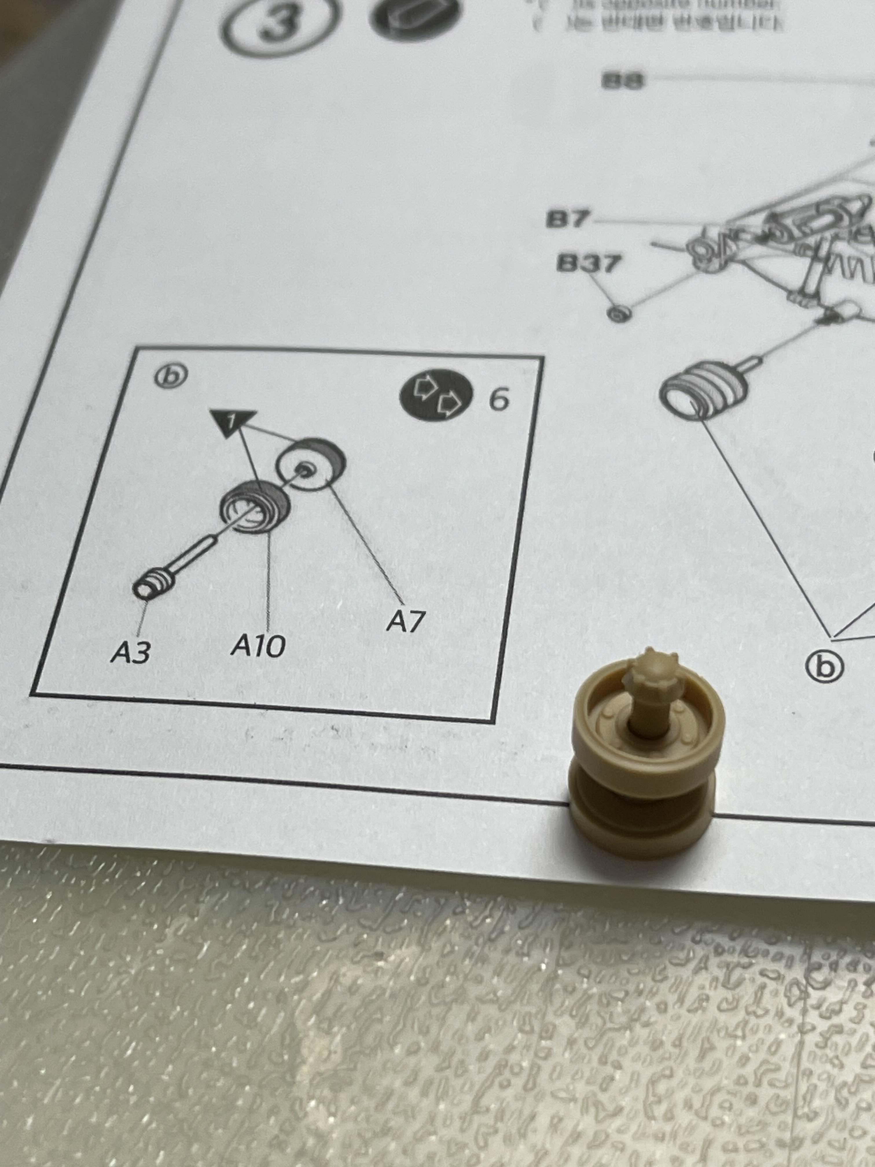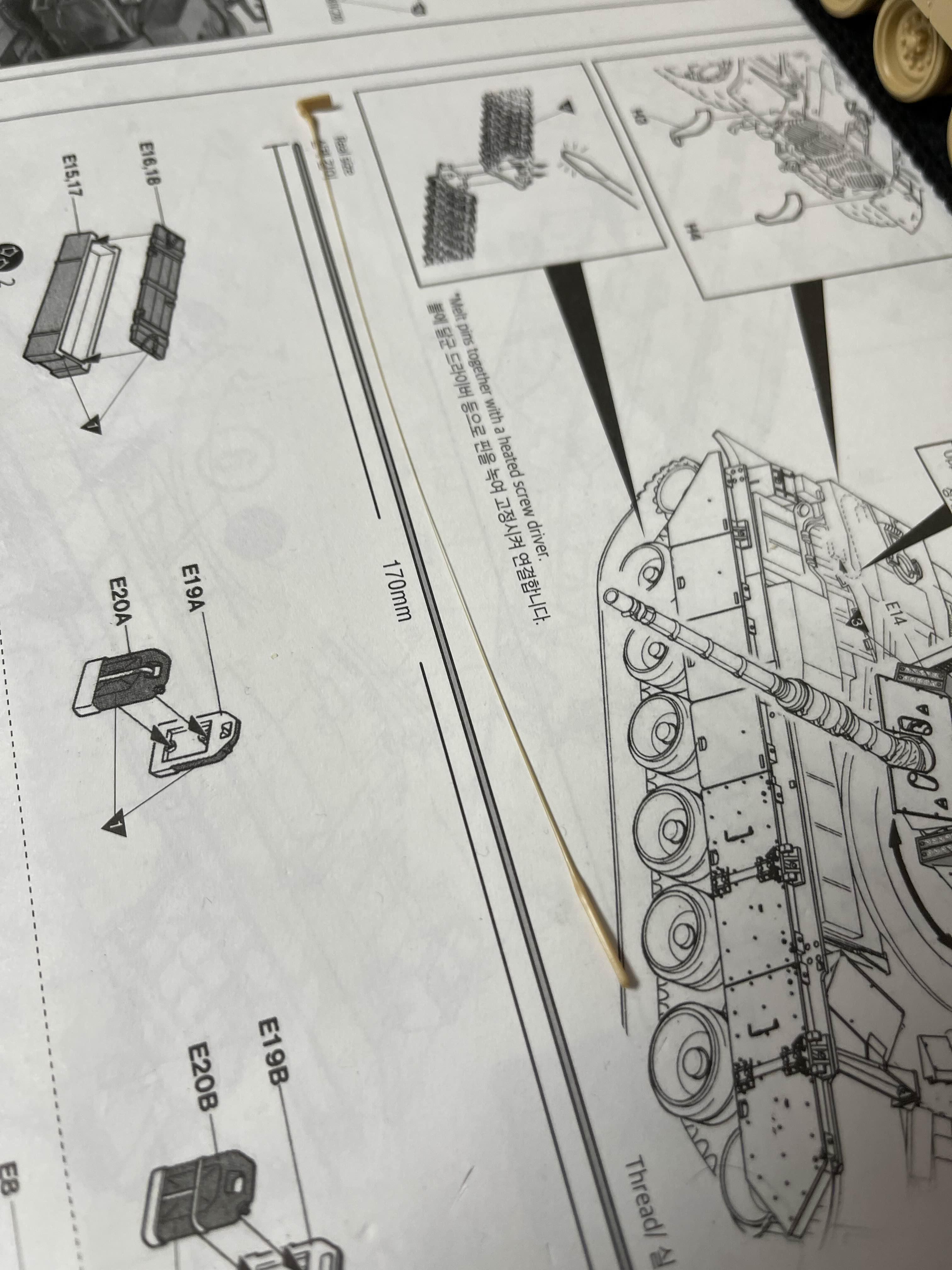 둘 중에 어떤 방향이 맞는건가? 일반적인 모델에서는 크게 상관은 없지만, 하지만 이 키트에는 고무 궤도로 구성되어 있기에 되도록이면 장력을 맞추는게 낫겠다는 생각이 들어서 고민을 하게 되었다. 결국 궤도를 완성해서 끼워 보고 힘이 얼마나 받을지 확인해 보기로 했다.