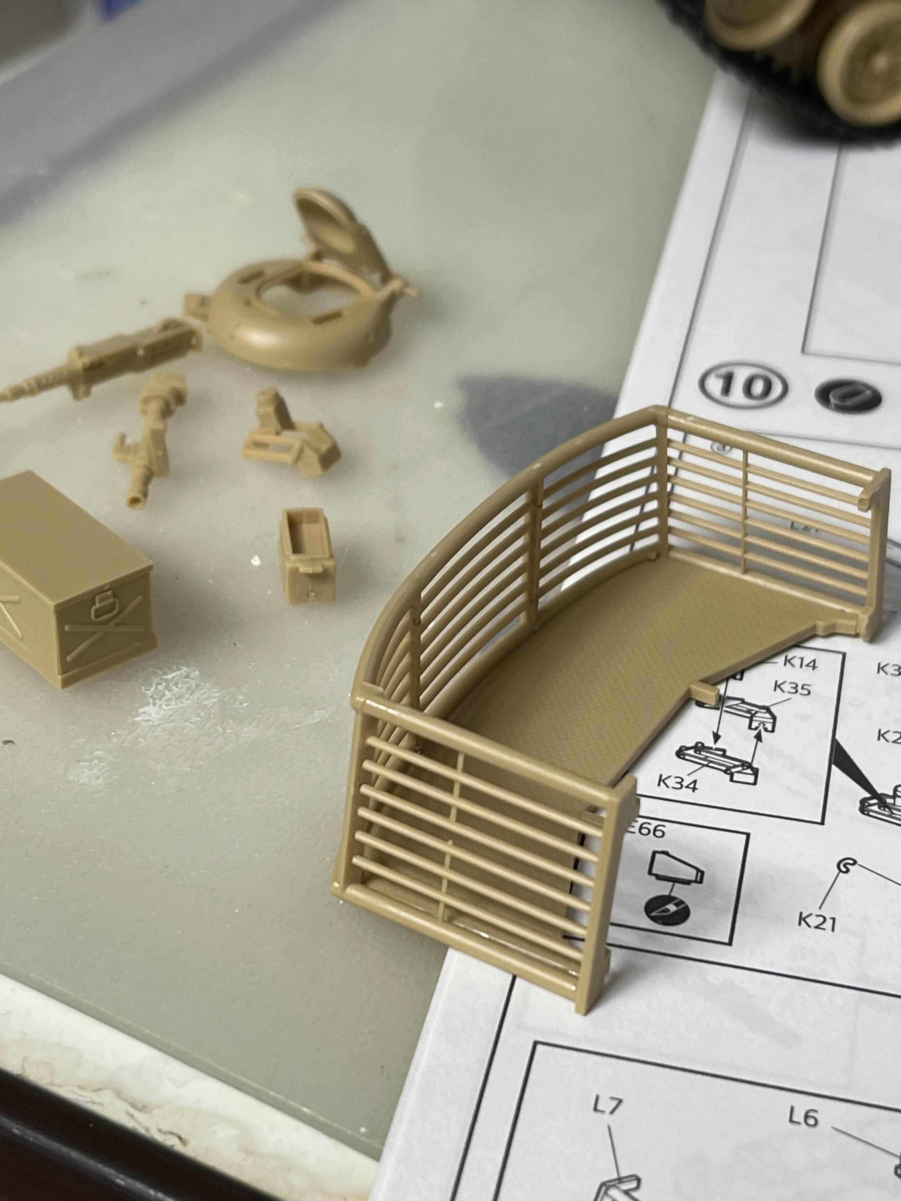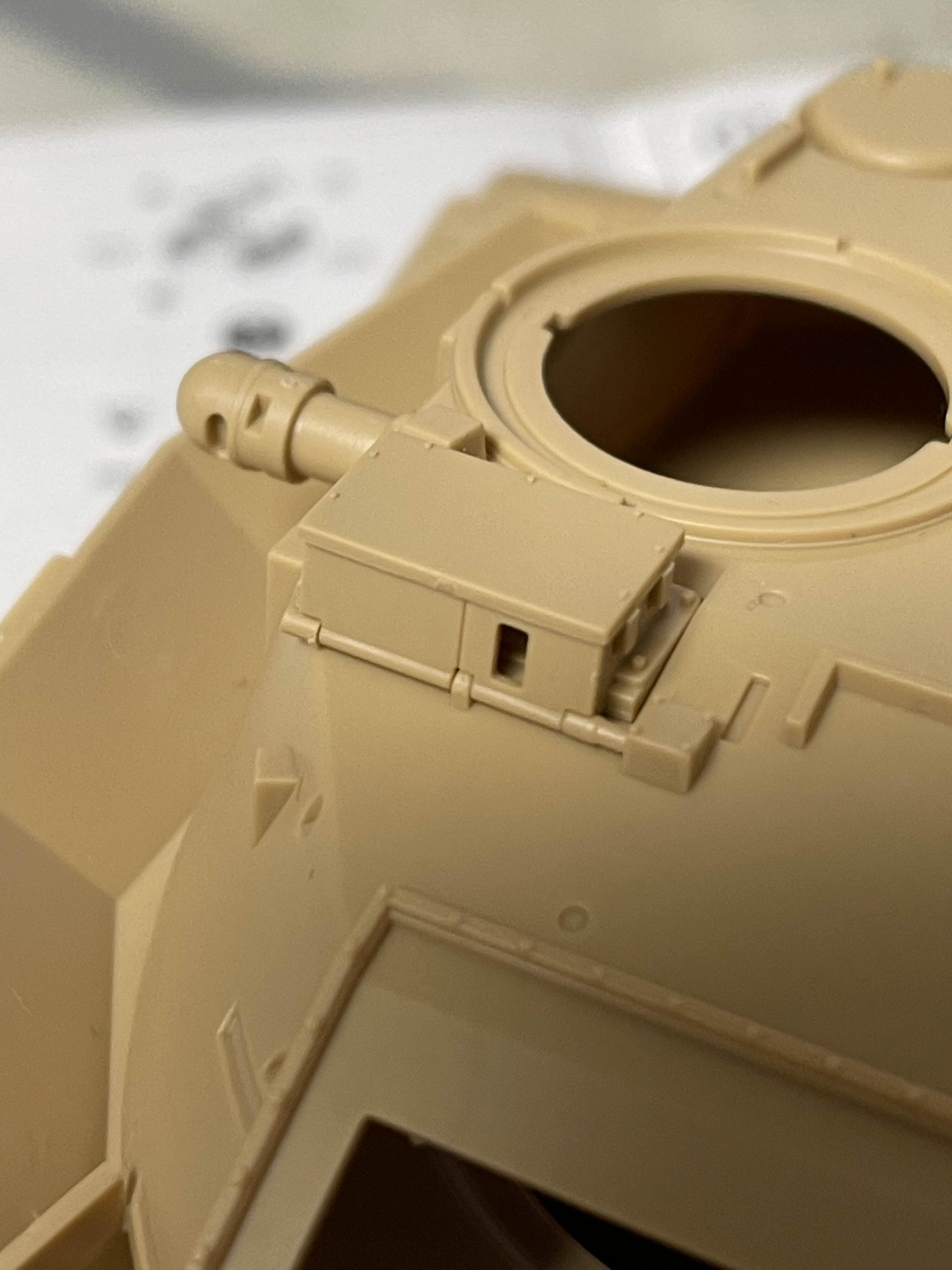 그나마 나중에 조금 밀어 넣긴했지만 처음에 잘 붙였어야 했다 이제 포탑(터렛)을 올려 보았다. M60A1을 베이스로 하고 있긴해도, 포탑 하단에서 외부 장갑이 연결된 전용 부품으로 되어 있다.