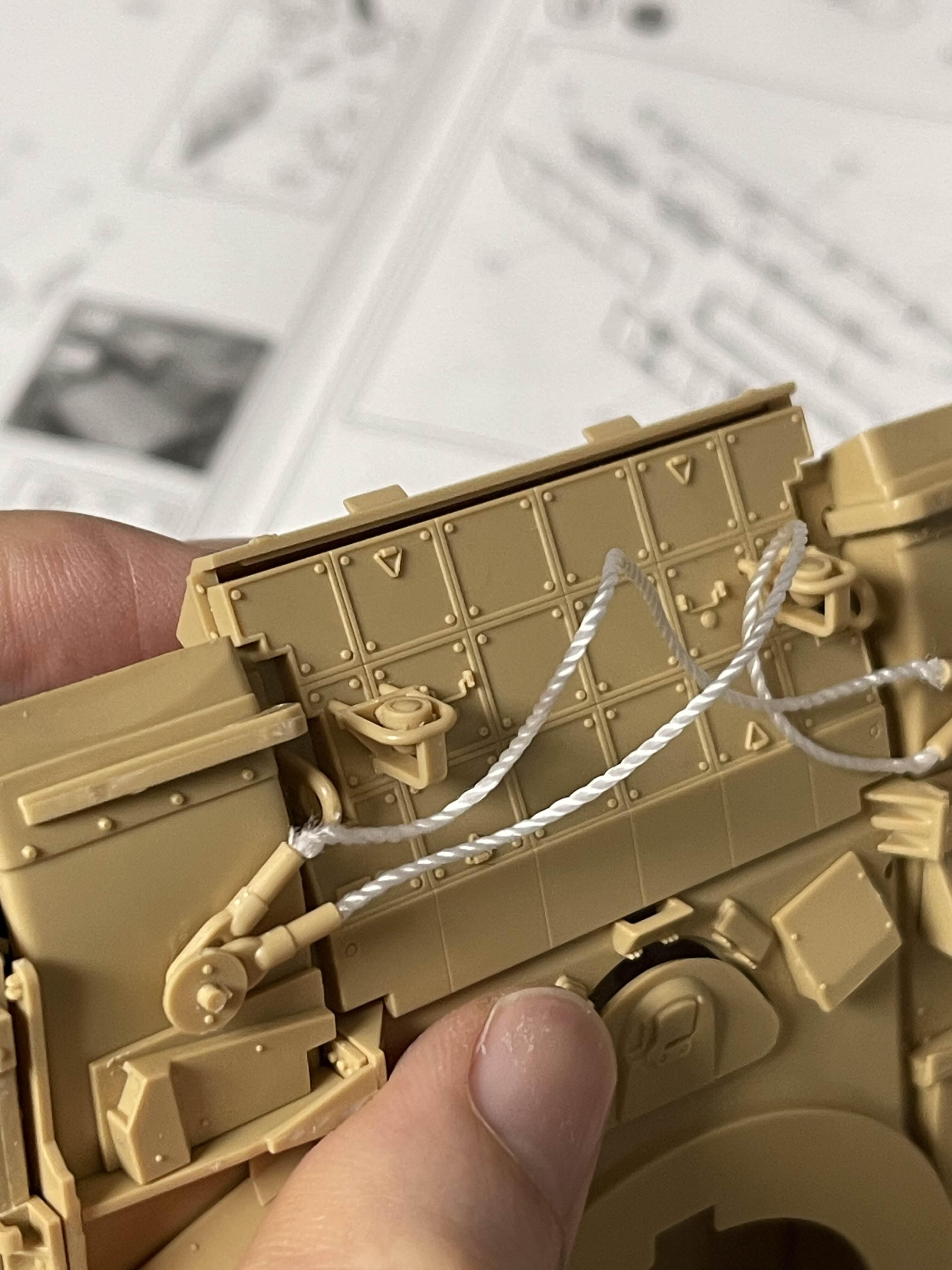 다음은 케이블이다. 케이블은 전차를 만들면 빠지지 않는 부분인데, 이를 끈으로 구성하기에 그 끝을 고리부와 연결해야 한다. 근데, 그게 생각보다 쉽지 않다.