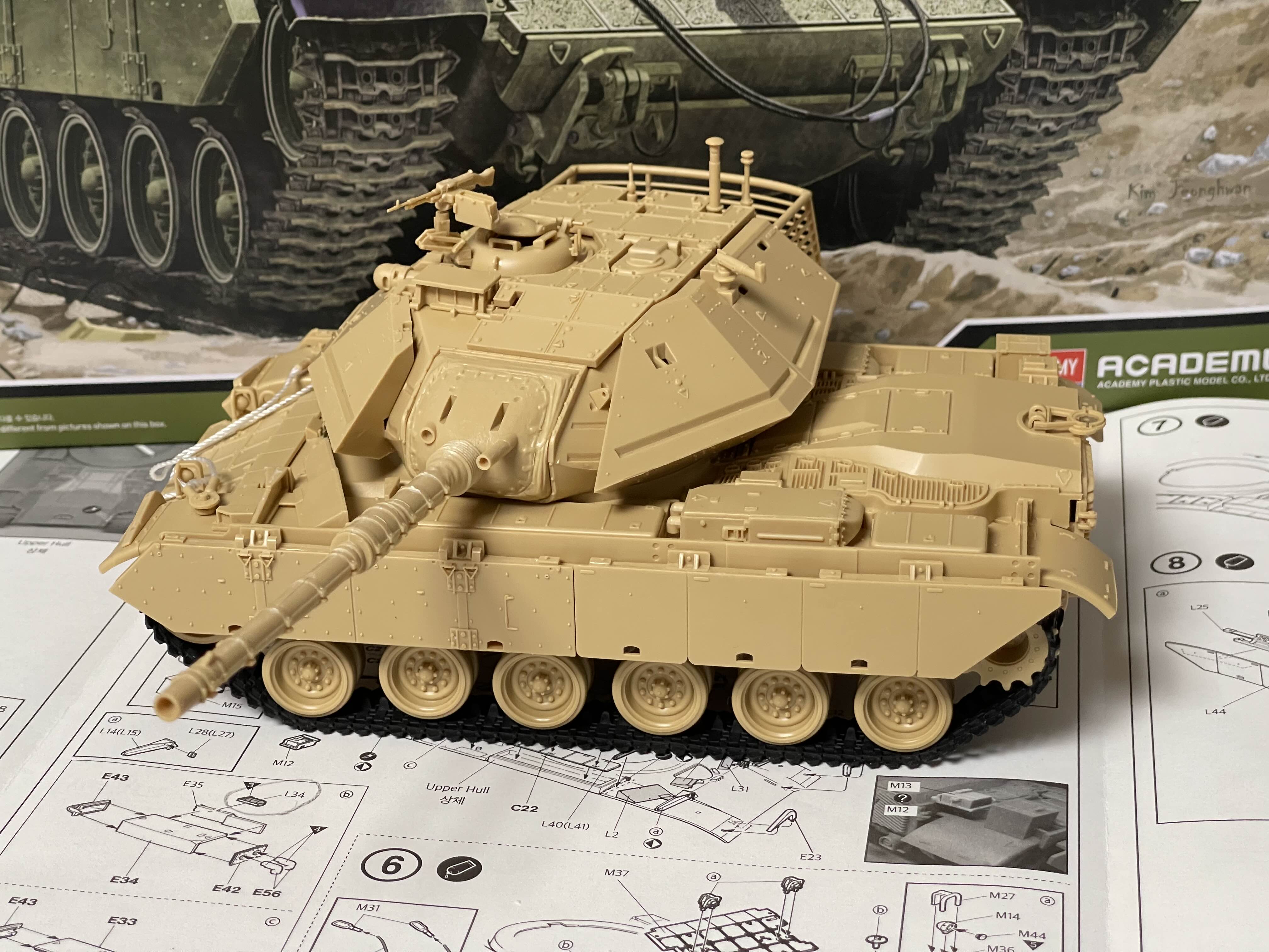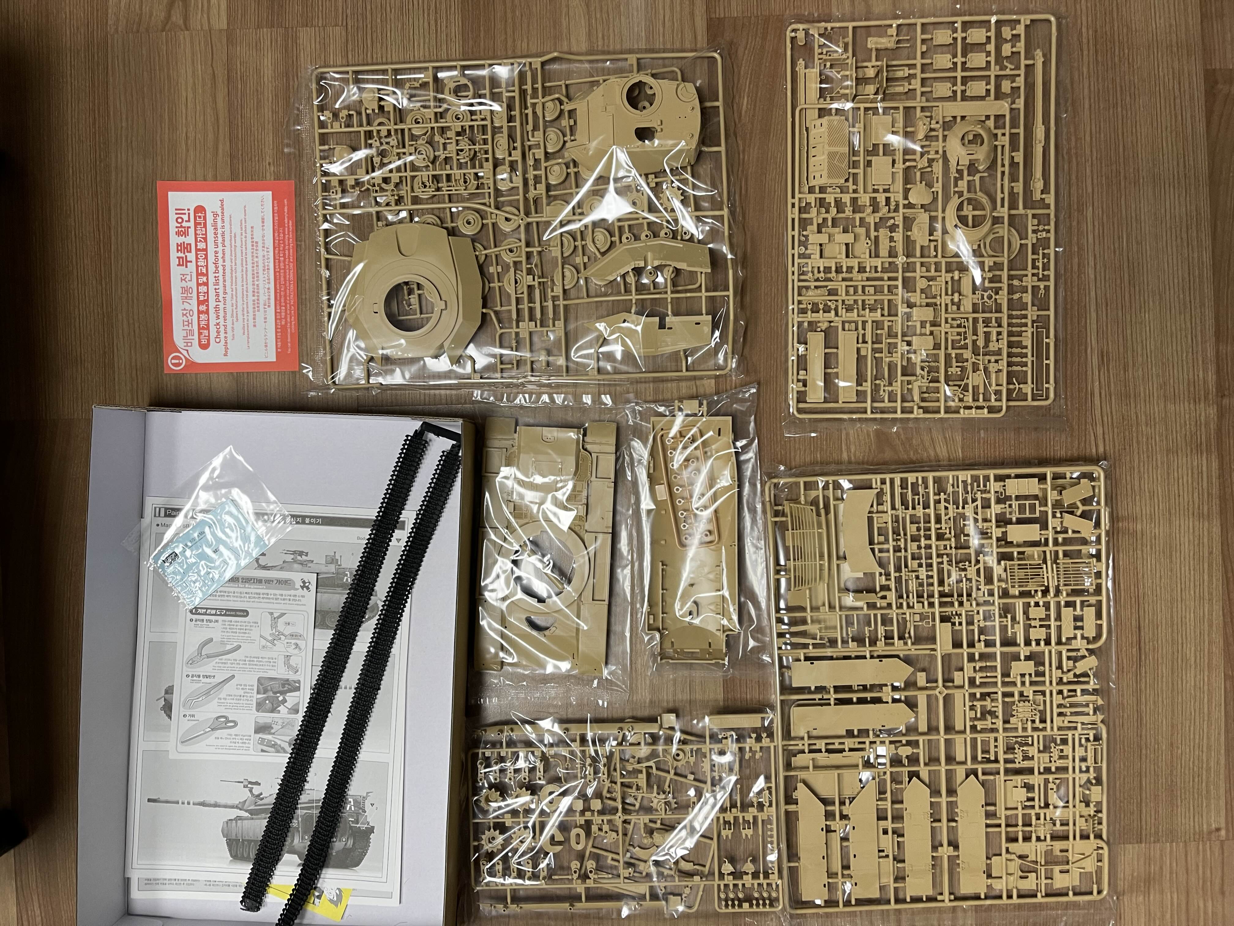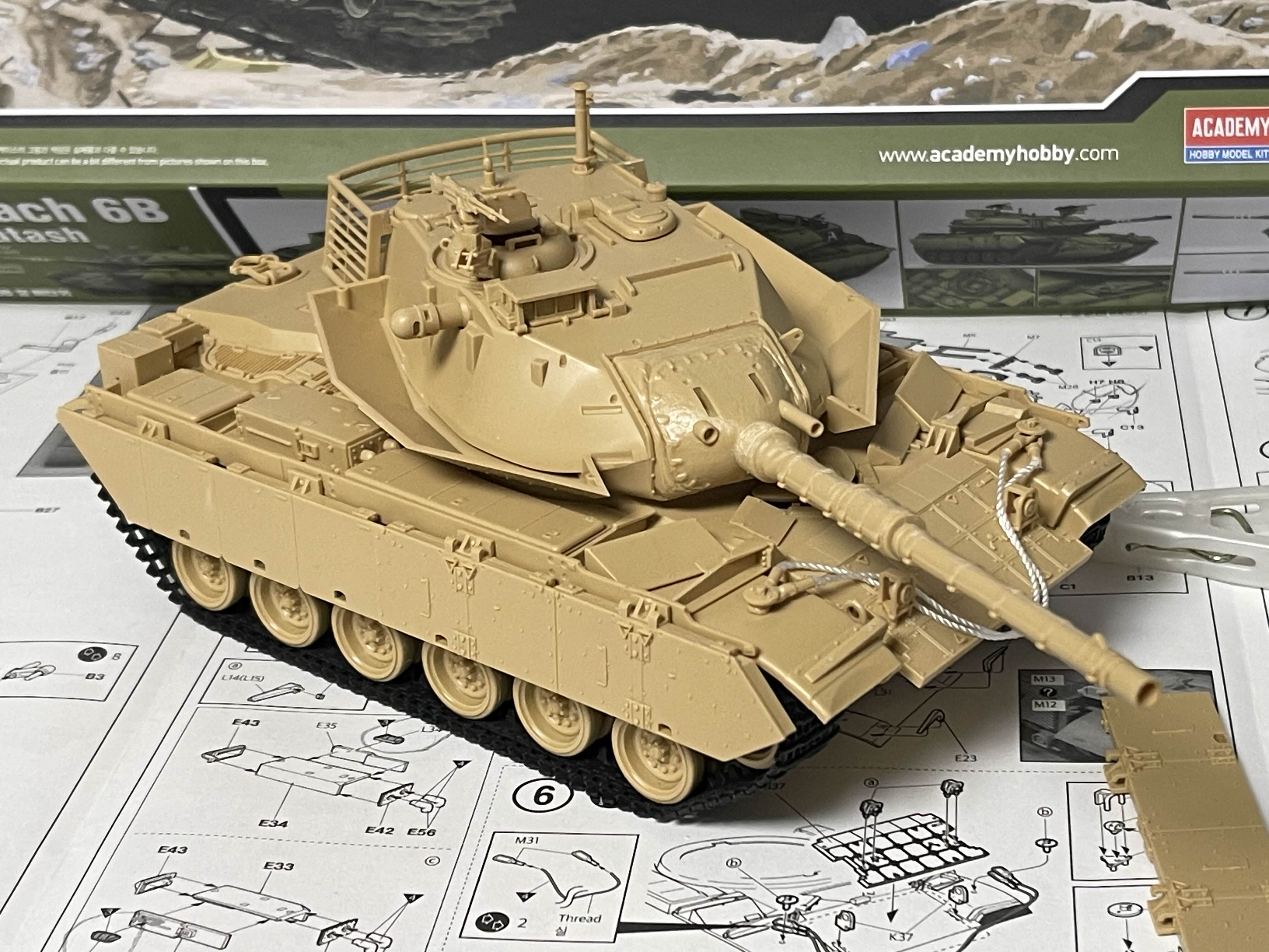 뭔가 우주선 같은 느낌을 주는 박스 아트 나중에 알게된 재밌는 사실은 Magach 전차는 미국 M48 전차나 M60 전차를 베이스로해서 개량된 모델이라고 한다. 특히, Magach 6는 M60A1을 기반으로 낮은 전차장 큐폴라(해치)와 폭발 반응 장갑(ERA)을 적용해서 만든 것이라고 한다.