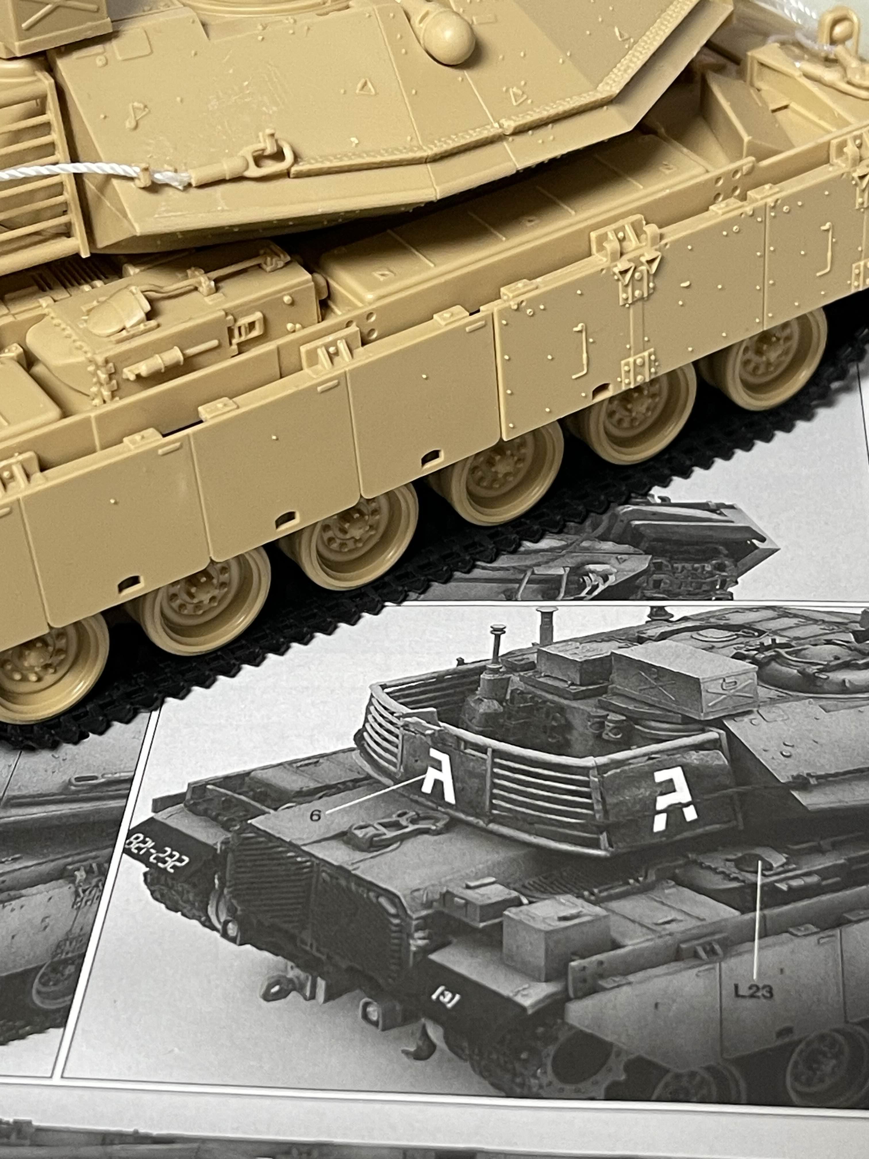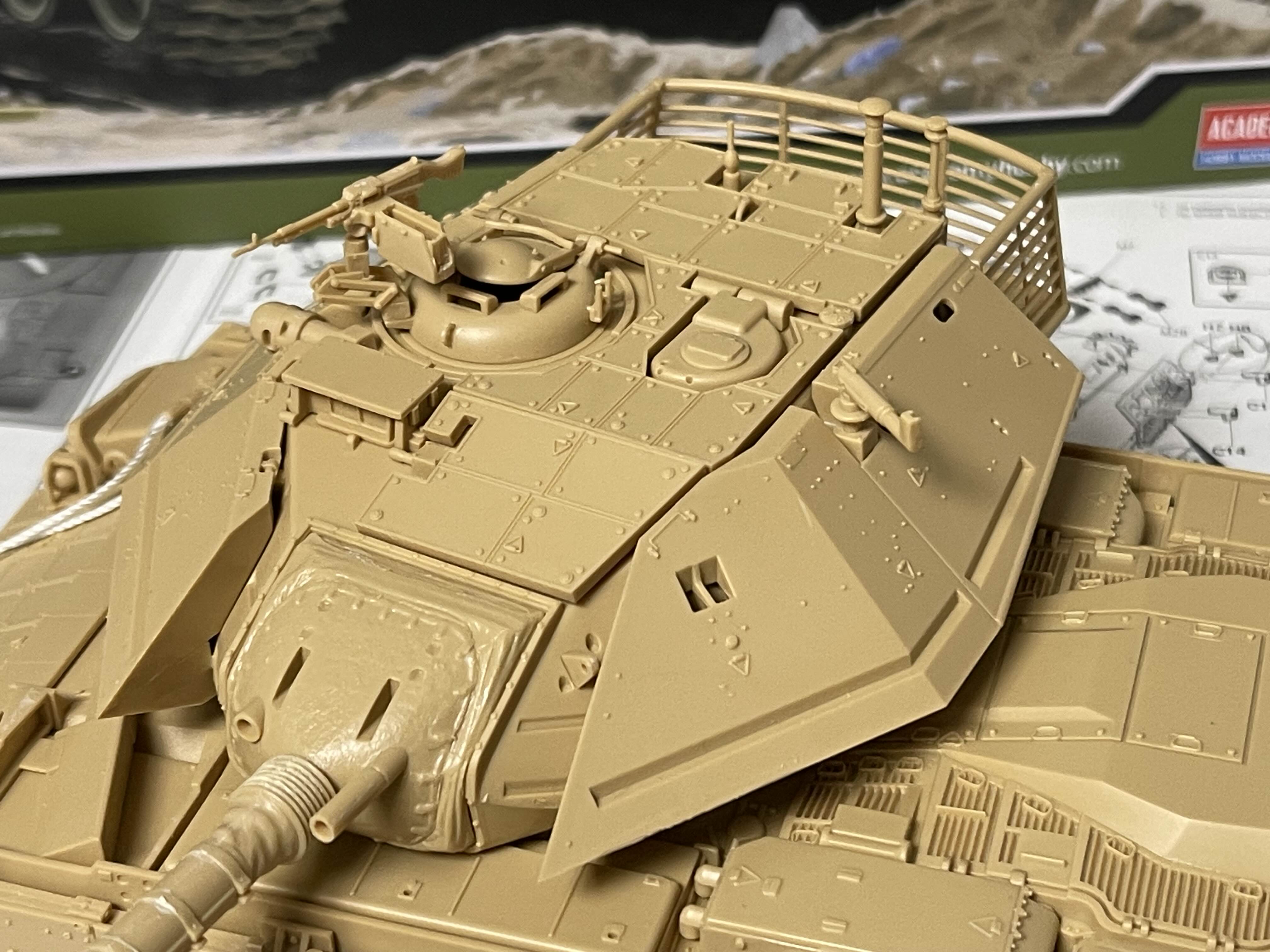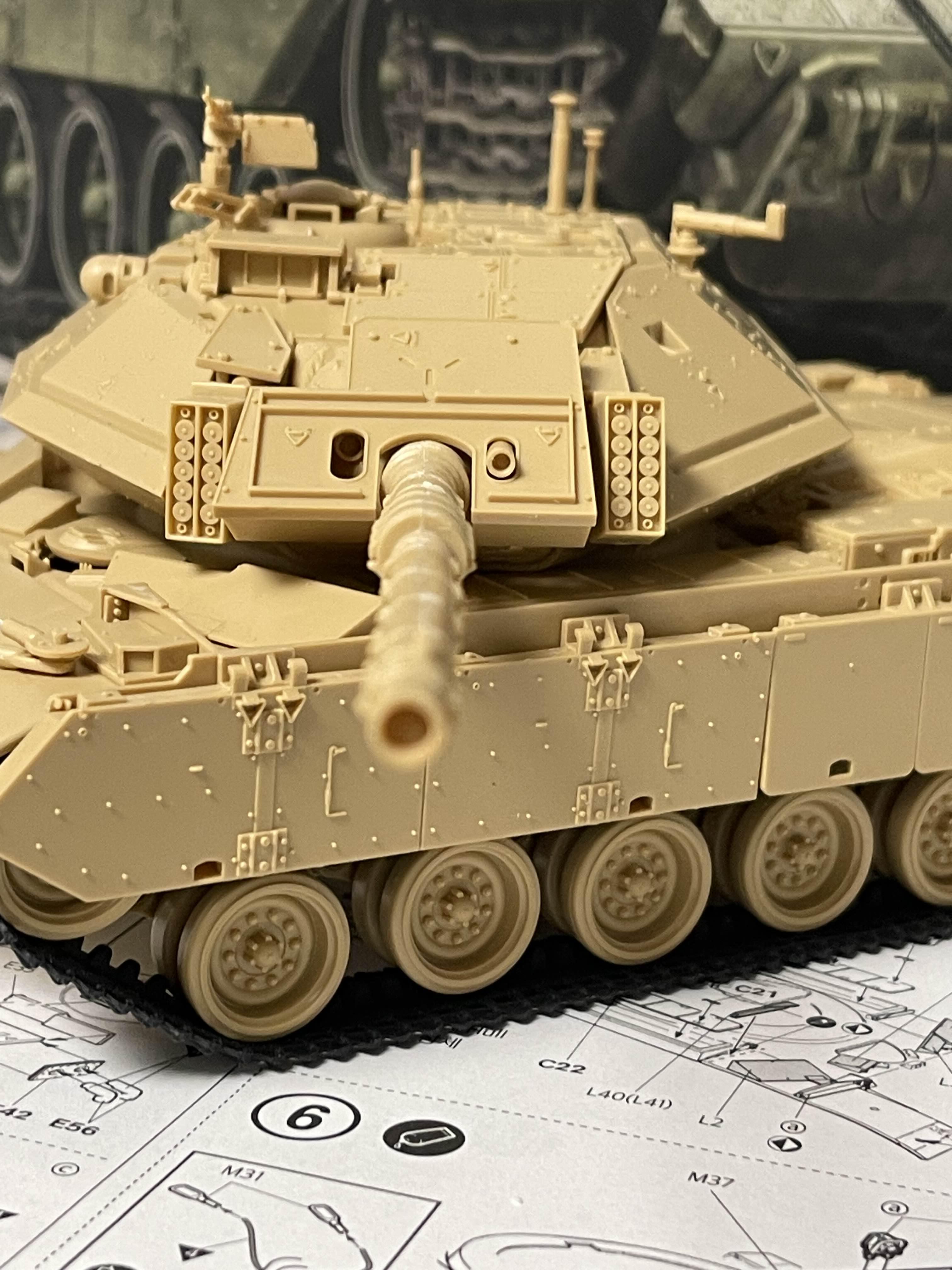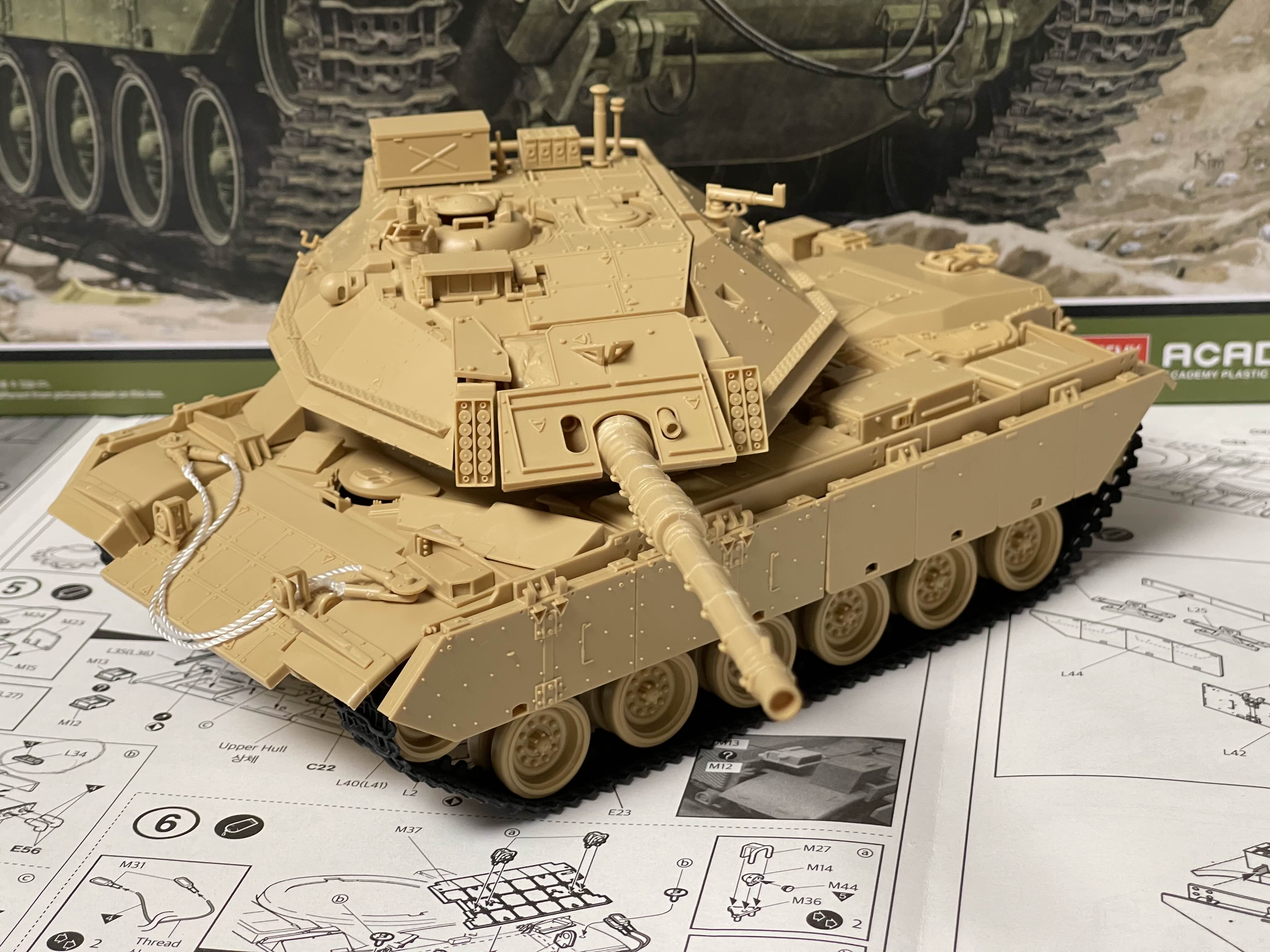 뭔가 우주선 같은 느낌을 주는 박스 아트 나중에 알게된 재밌는 사실은 Magach 전차는 미국 M48 전차나 M60 전차를 베이스로해서 개량된 모델이라고 한다. 특히, Magach 6는 M60A1을 기반으로 낮은 전차장 큐폴라(해치)와 폭발 반응 장갑(ERA)을 적용해서 만든 것이라고 한다.