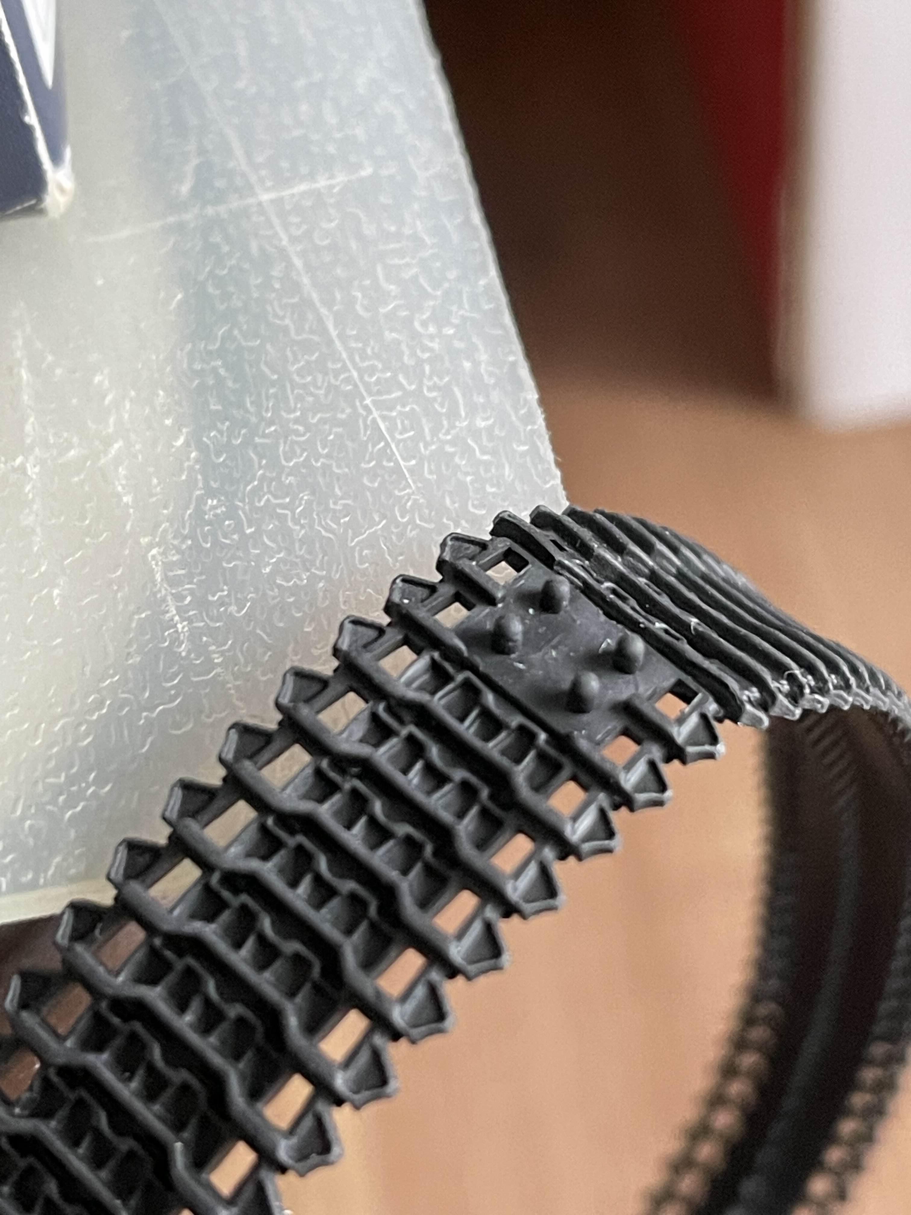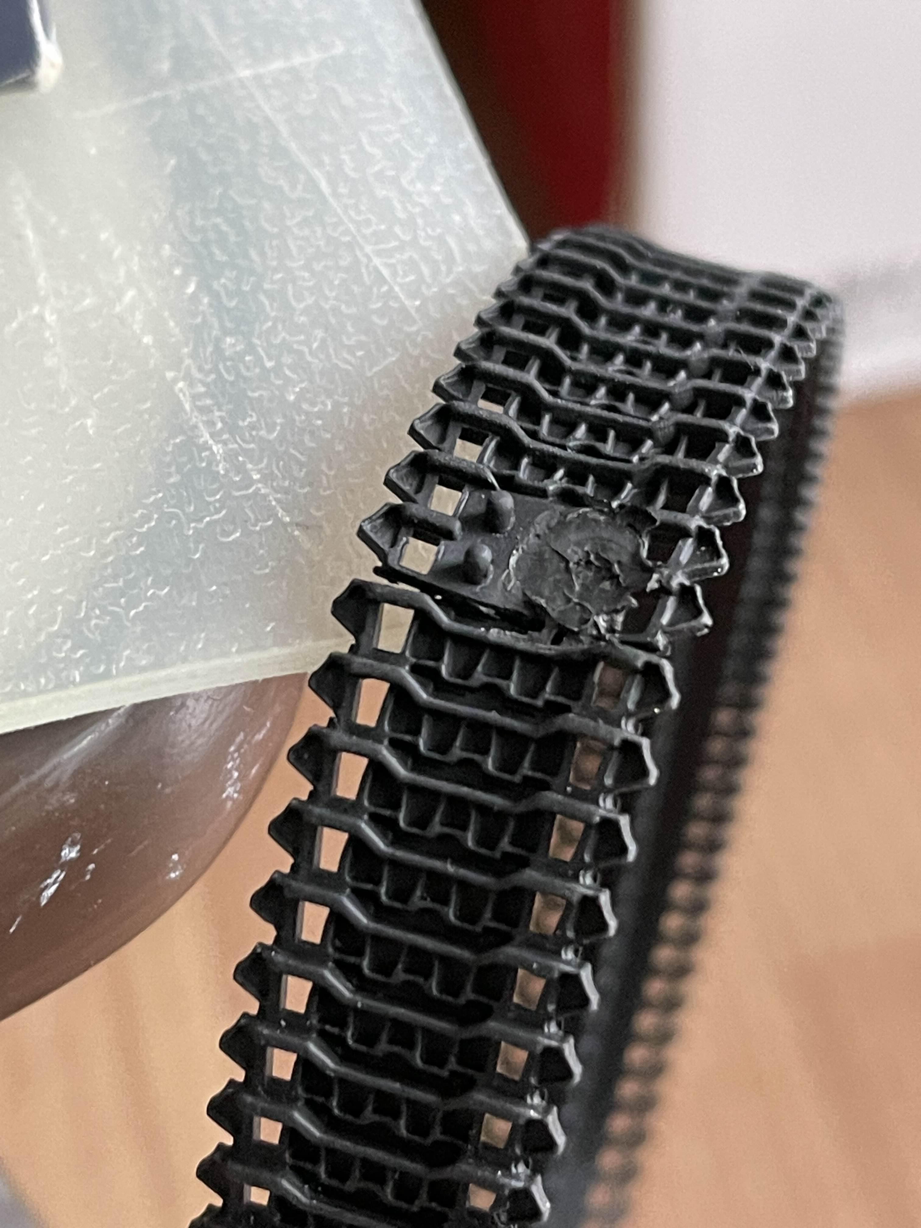 가조립된 궤도 연결 부 고무로 된 궤도의 경우 저렇게 결합된 상태에서 튀어나오는 고무를 인두와 같은 것을 이용하여 납작하게 만들어야 한다. 지난 번에 K9 자주포를 조립 할 때도 순간 접착제를 이용하면 괜찮다고 해서 붙여 보았다가 떨어져서 이번에는 확실하게 불로 금속 막대를 달궈서 처리하기로 했다.
