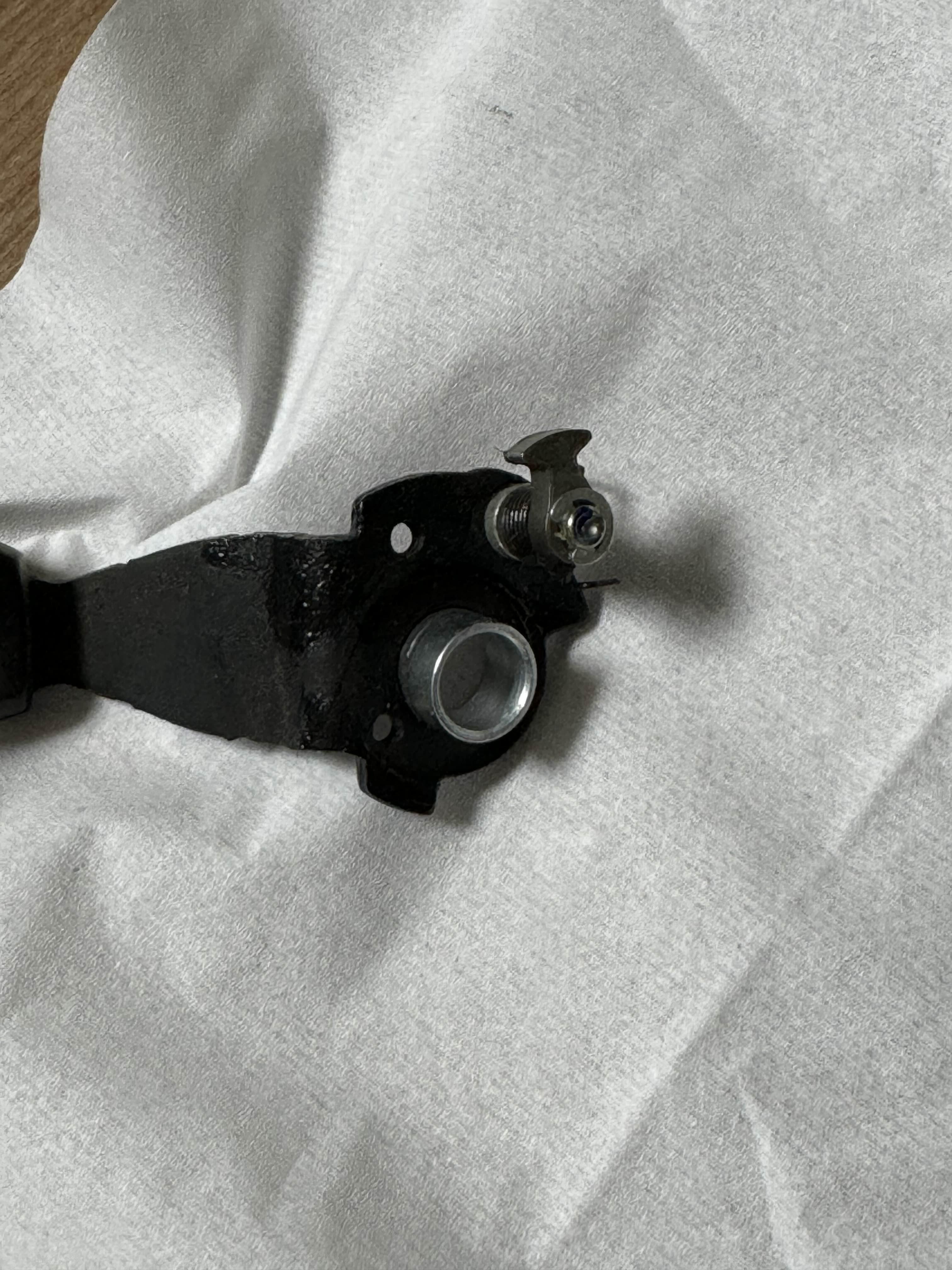 변속 손잡이를 분리하면 아래와 같이 망치와 같은 부분이 달려 있는 것을 볼 수 있는데, 오랫동안 안쓰고 방치하다보니 축이 뻑뻑해져서 같이 체결되어 있는 스프링의 힘으로 원위치 복원이 잘 안되는 상태였다. 머리 같은 부분은 일종의 래치와 같은 기능을 담당하는 것으로 변속이 될 때 시프터 내부의 축에 달린 톱니에 연결되어 뒤로 후퇴하지 않게 고정한다. 근데 이 부속이 너무 뻑뻑해서 변속 레버가 동작했을 때 설계된 위치에 고정되지 않고 있었던 것이다.