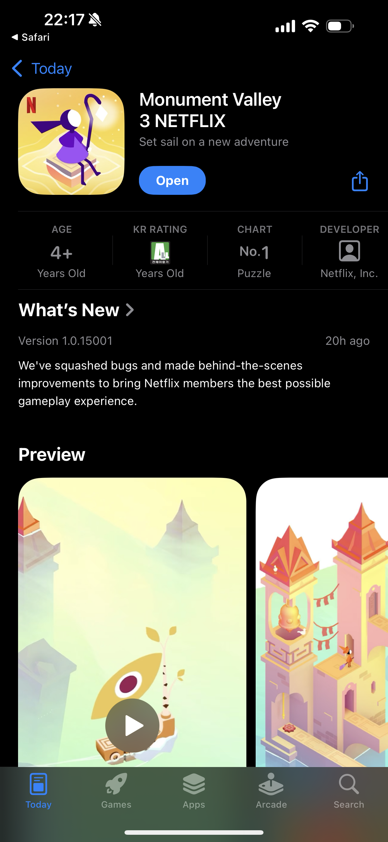 홈페이지에 들어가보면 더이상 게임 개발은 안하는것 처럼 보였는데 느닷없이 앱스토어에 Monument Valley 3 가 올라온걸 보고 오랜 친구를 다시 본 것처럼 너무 반가웠었다. 부랴 부랴 설치를 하고 실행을 하려고 했는데, 그제서야 이 문구가 눈에 들어왔다.NETFLIX