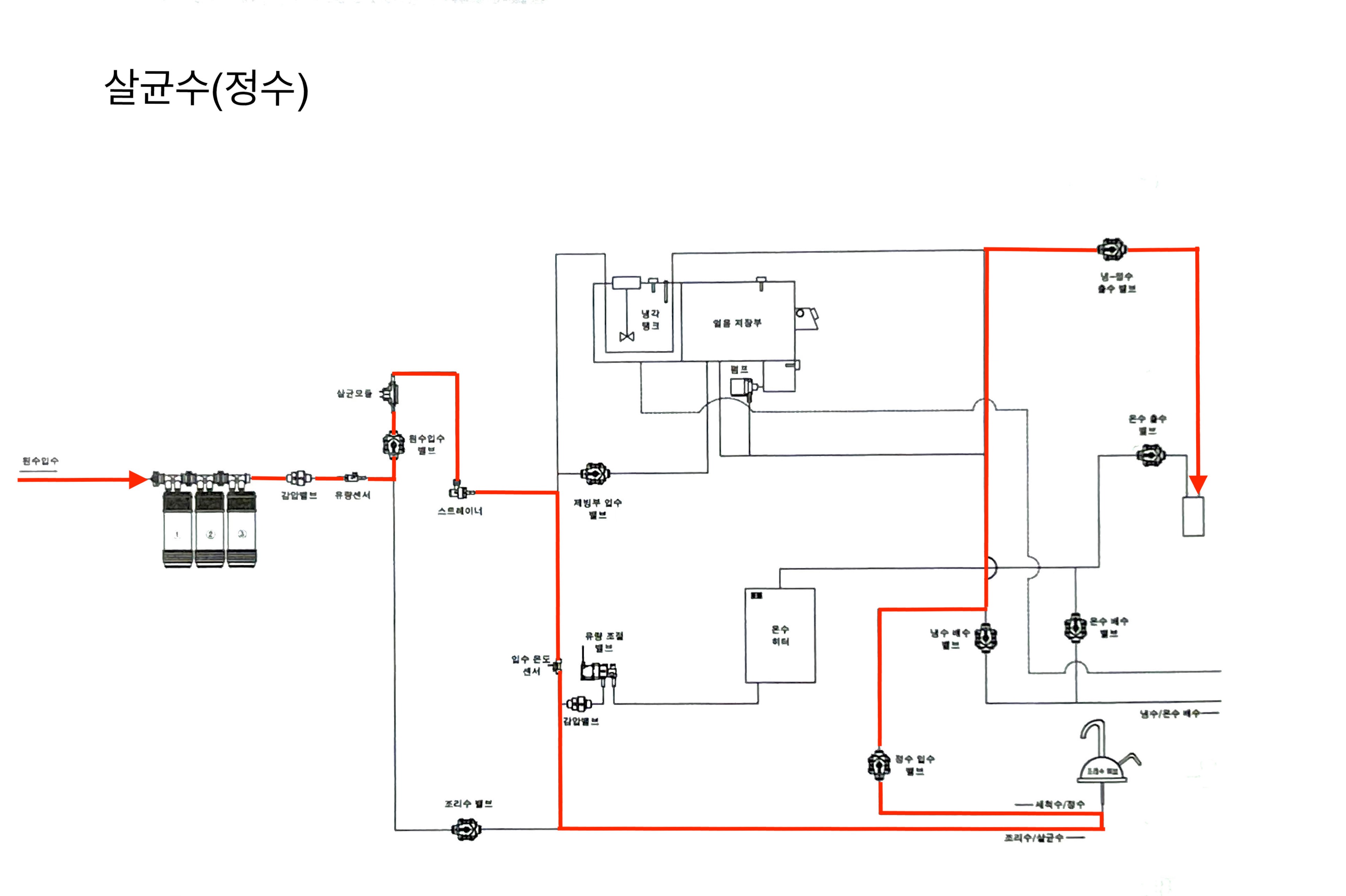 조리수쪽으로 살균수를 배출했다면 당연히 해당 라인도 정수로 세척을 해야한다. 이로써 조리수 살균수에 대한 설명을 듣고 가졌던 궁금증은 해결 할 수 있겠다.